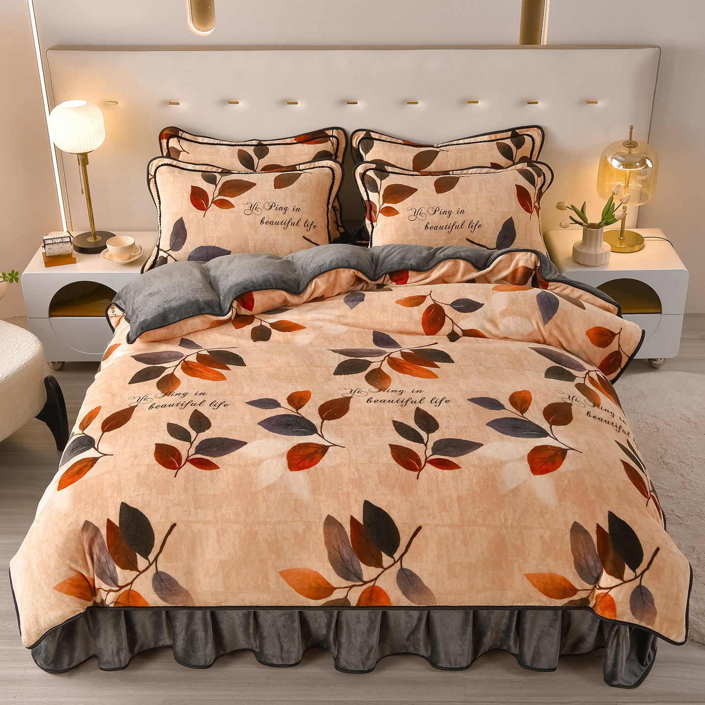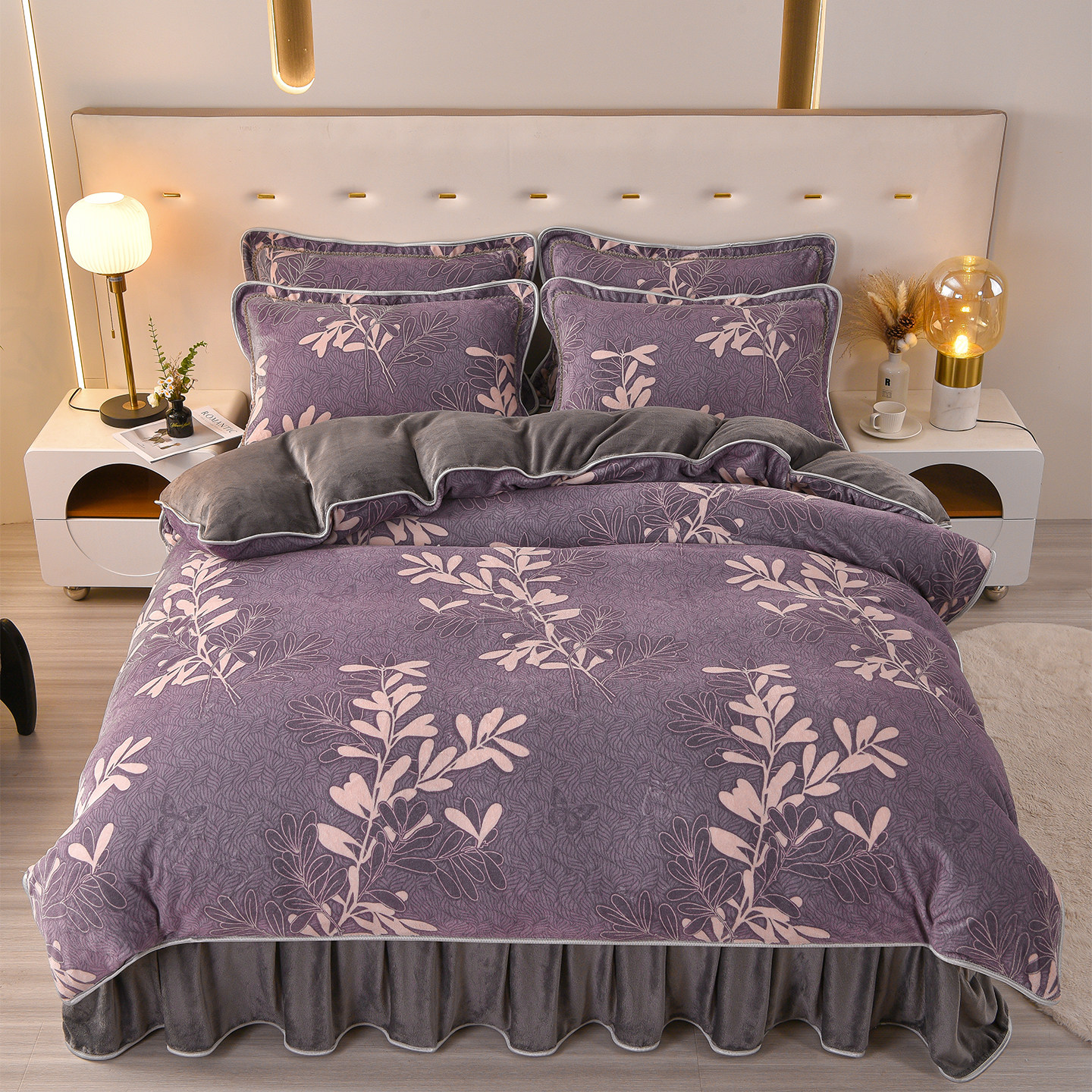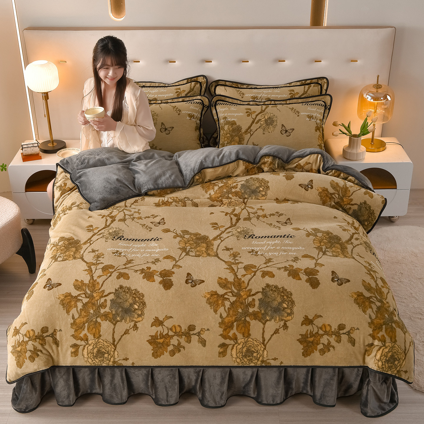 冬季加厚款牛奶绒四件套轻奢高级感现代欧式珊瑚绒床上双面绒被套