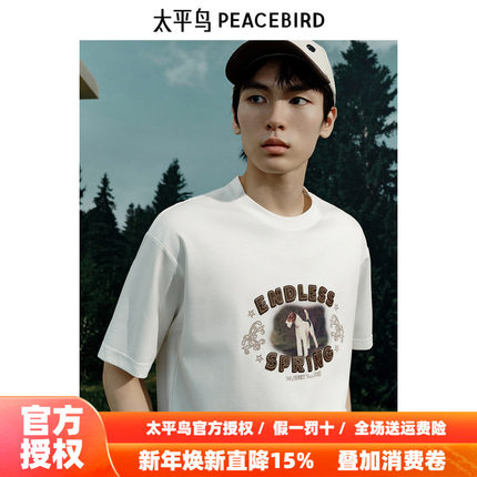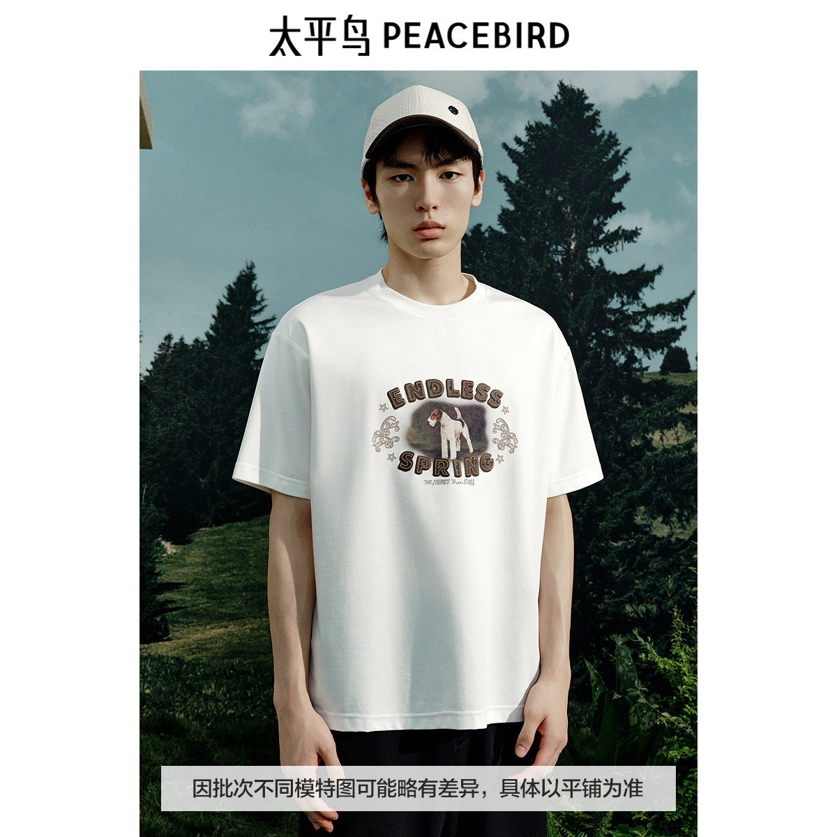 【商场同款】太平鸟男装 休闲T恤50支双面汗布印花T恤 B1CNF1233