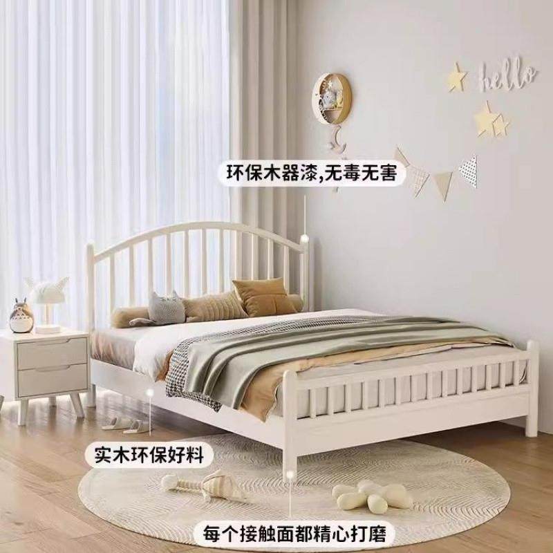 l奶油风纯实木床白1米35现代简约公主温NFY莎儿童女孩色Fs1.5米单