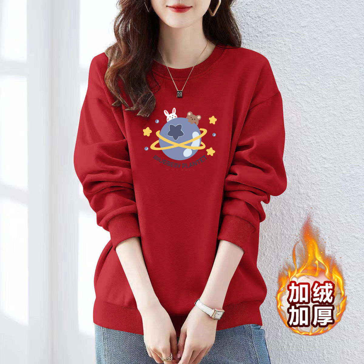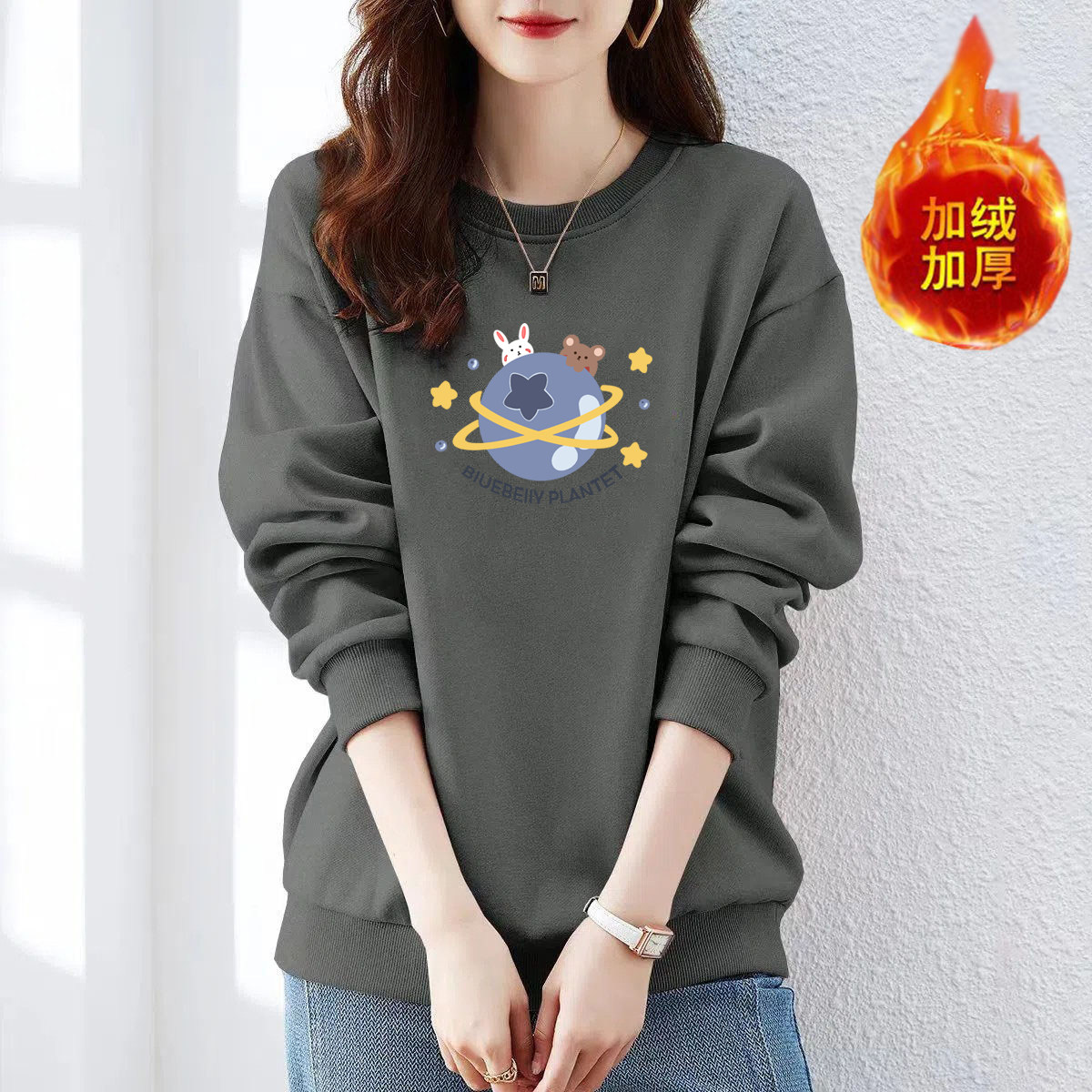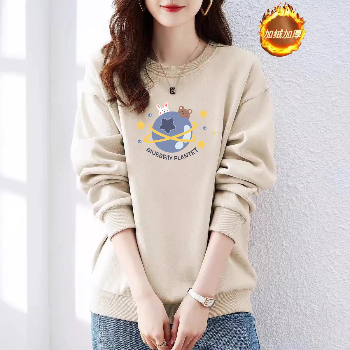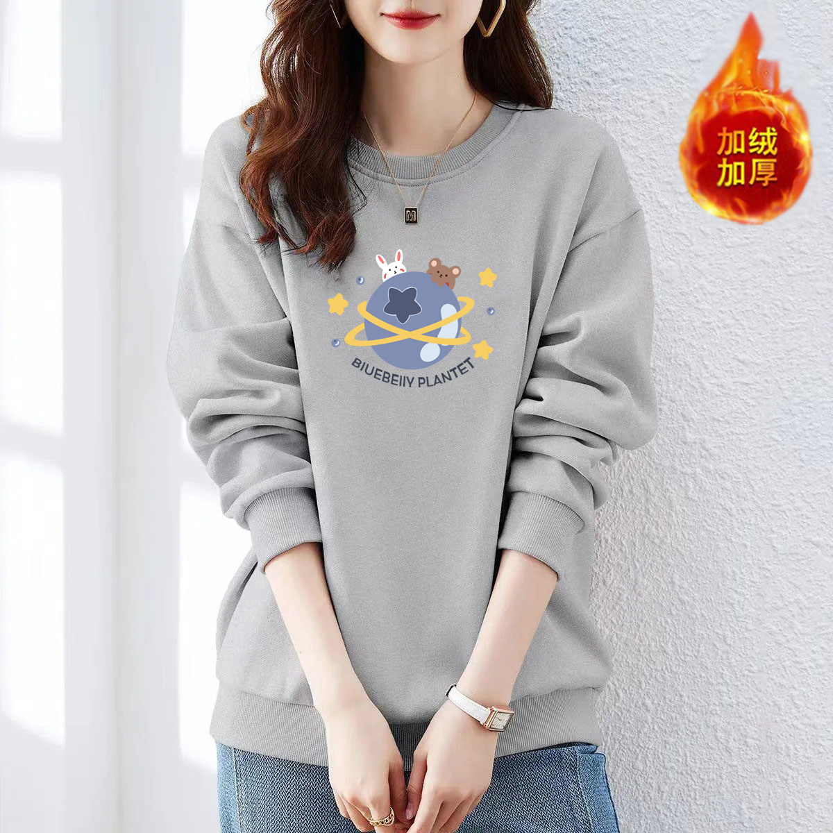 山东即墨纯棉加绒宽松流行卫衣女