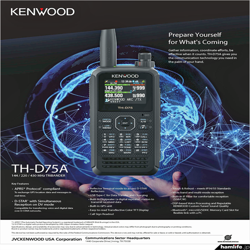 日本 建伍/KENWOOD TH-D75(THD75)对讲机/双频段APRS兼容 D-STAR
