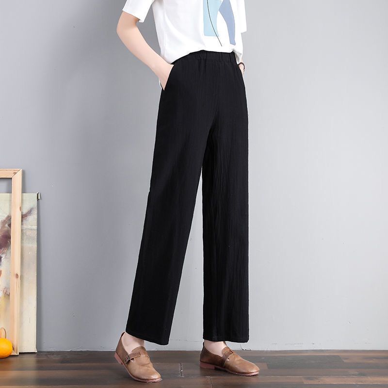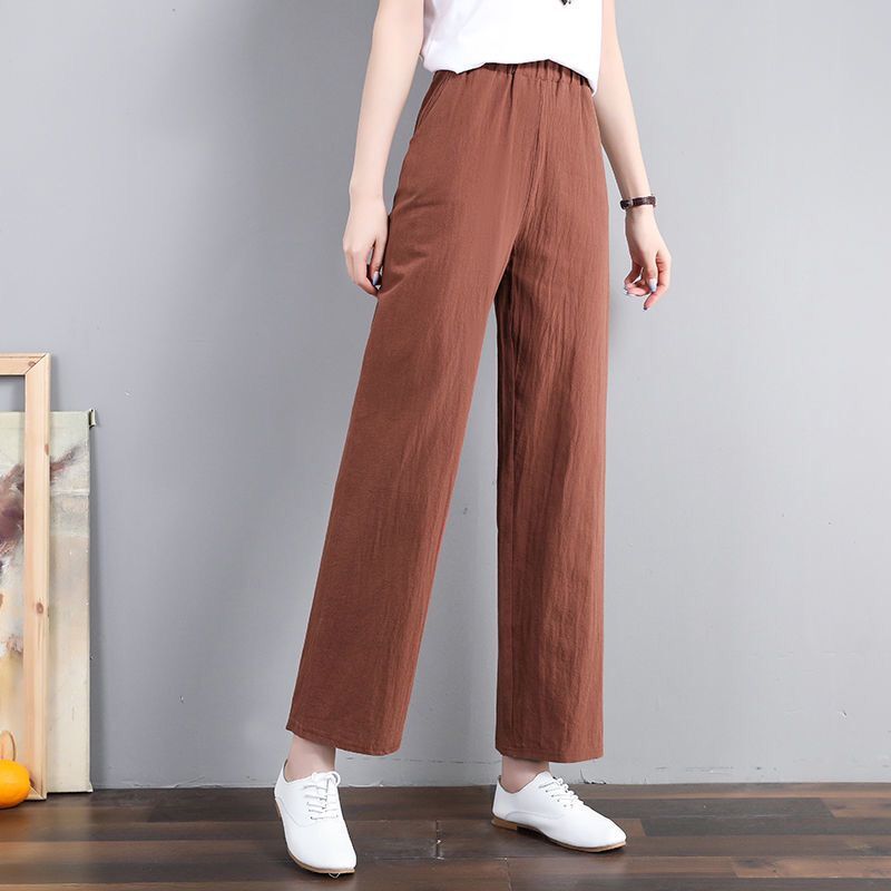 含棉新款阔腿裤女士七分九分春夏薄款高腰直筒裤宽松休闲裤子大码
