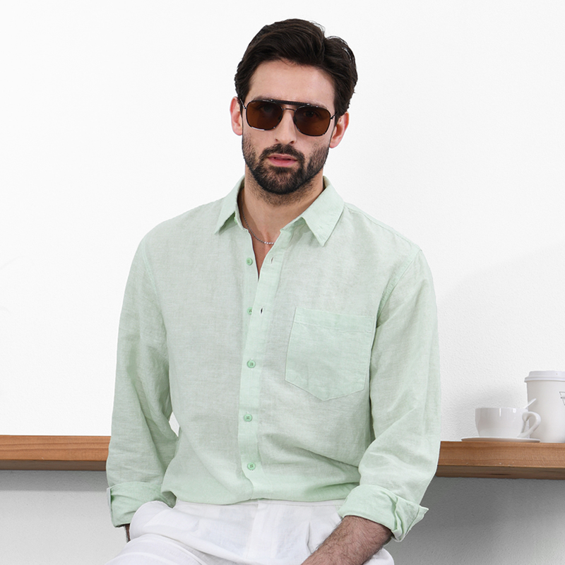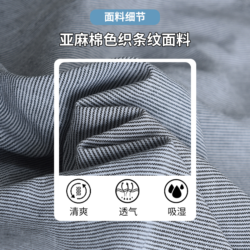 汉絮透气条纹长袖棉麻衬衫男款春季时尚文艺休闲宽松方领亚麻衬衣