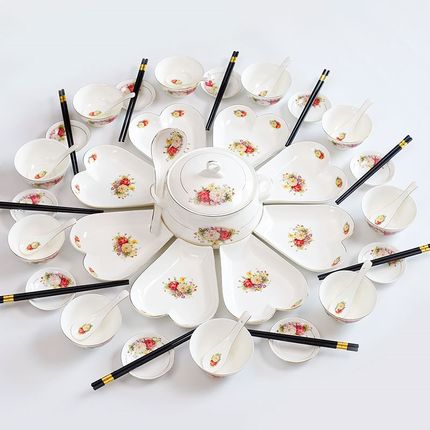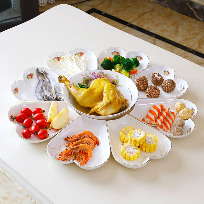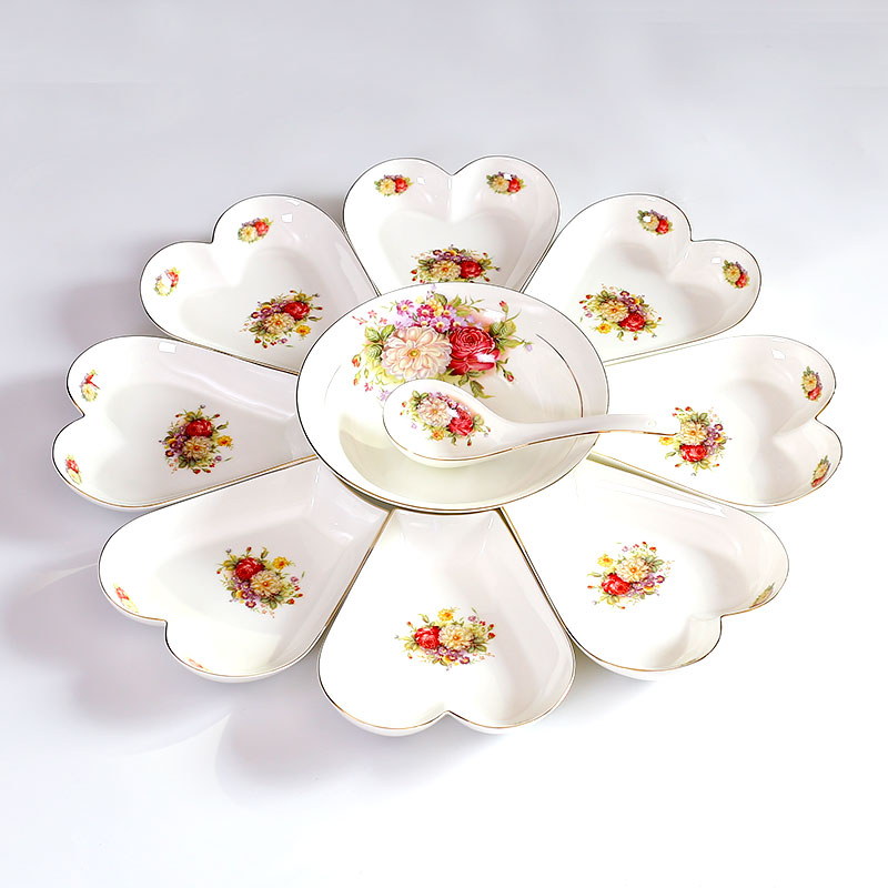 骨瓷团圆饭爱心盘套装拼盘餐具组合家用创意陶瓷盘子菜盘餐盘碟子