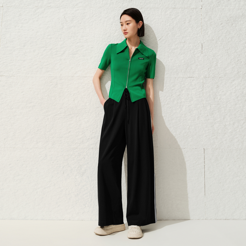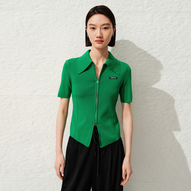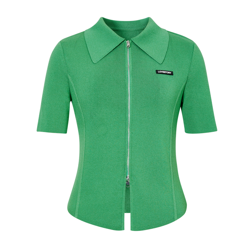 艾诺丝雅诗 简约修身翻领短袖针织外套女休闲开衫夏季30428102