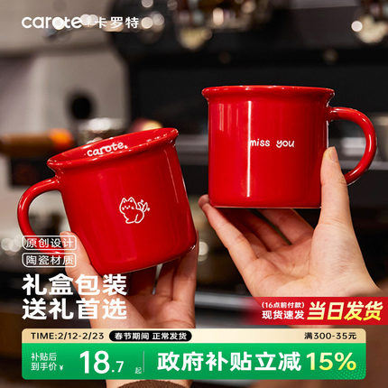卡罗特马克杯子陶瓷水杯女咖啡杯情侣对杯红色新婚伴手礼新年礼物
