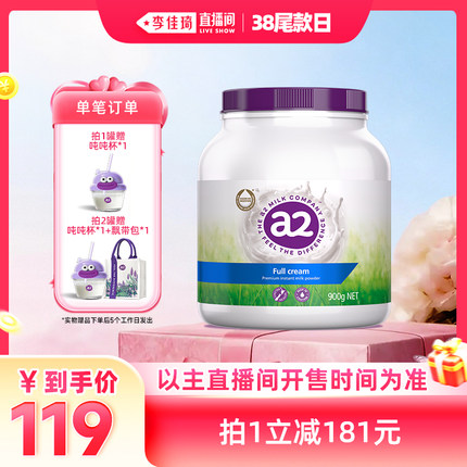 【自营】【李佳琦直播间尾款日】a2全脂成人牛奶粉高钙900g/罐