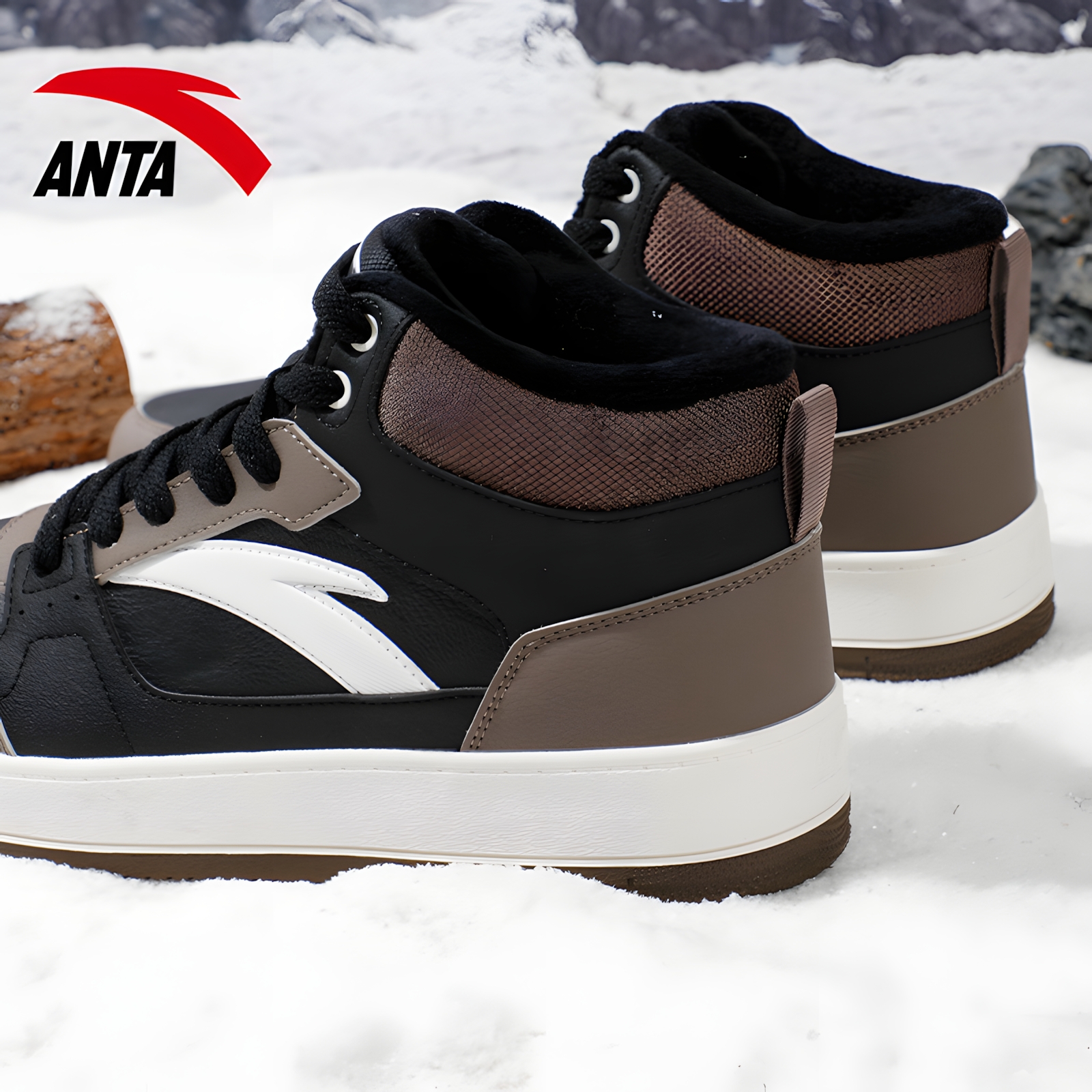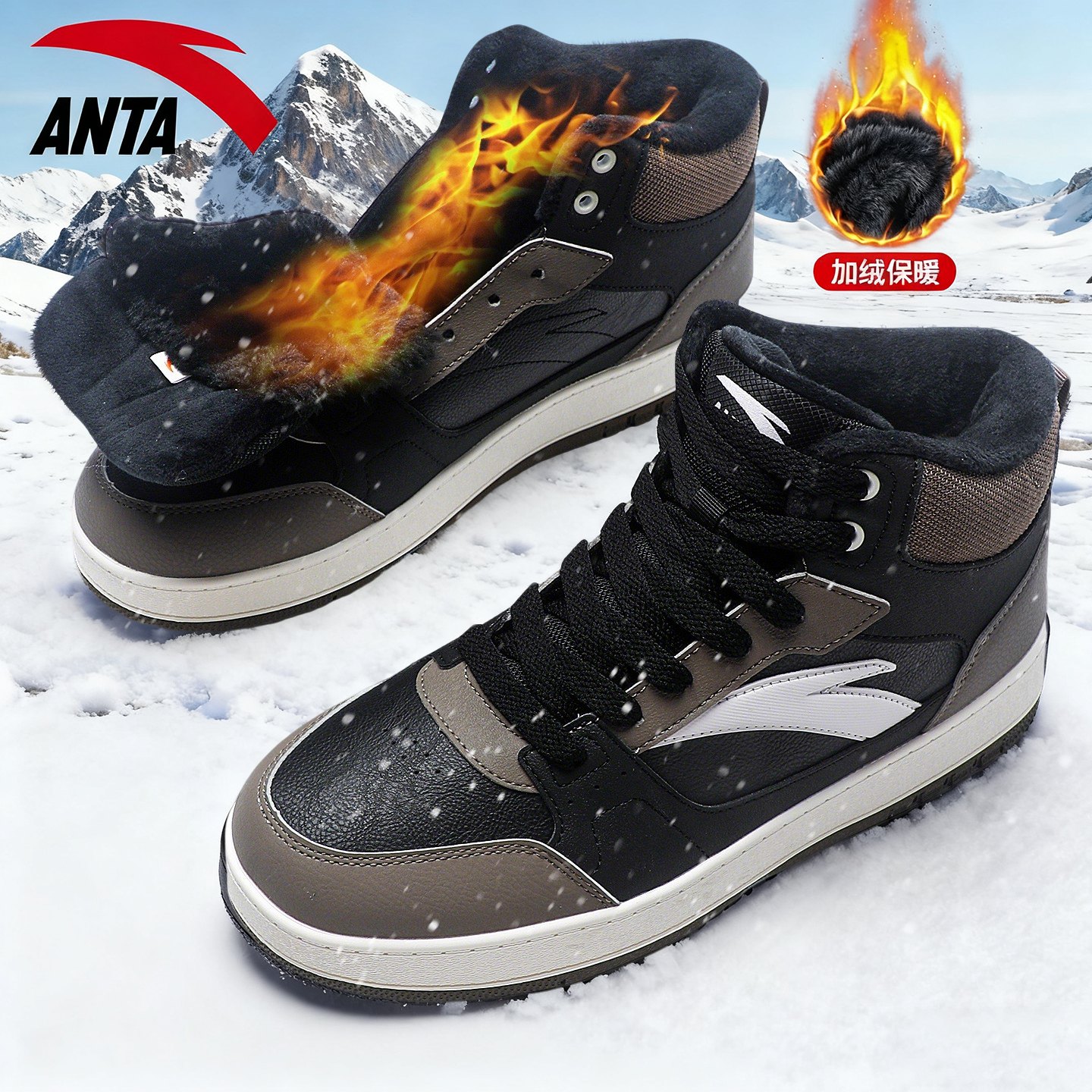安踏男鞋加绒保暖板鞋冬季高帮青少年厚底运动棉鞋男士潮流休闲鞋