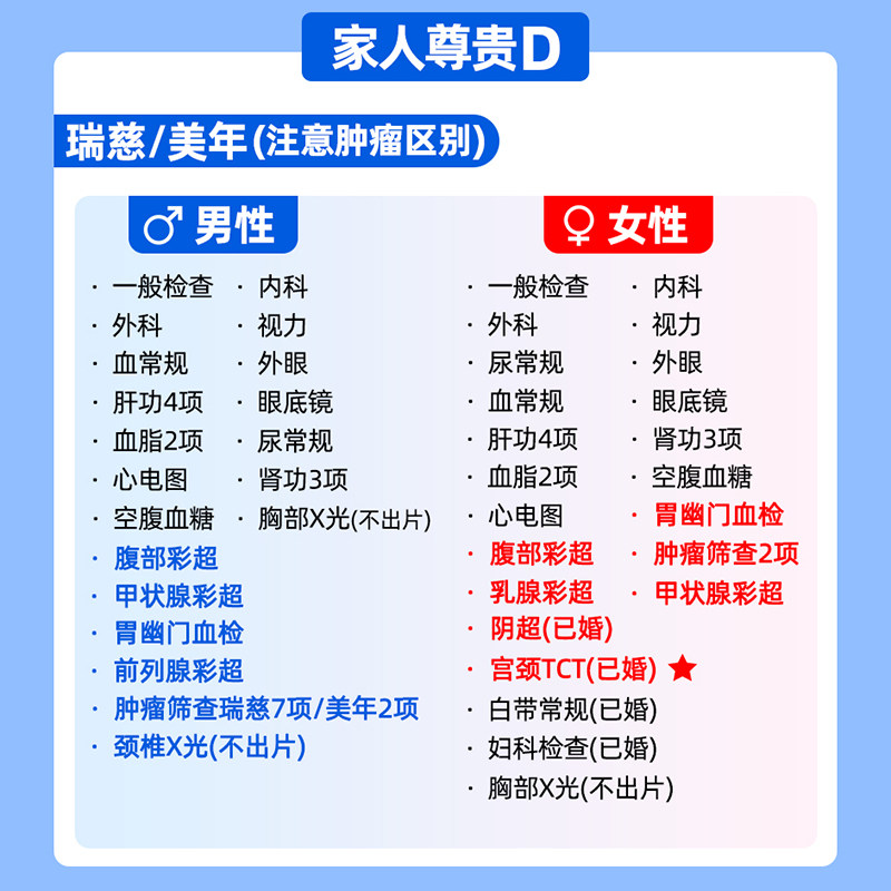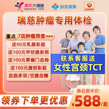 瑞慈体检美年大健康家人尊贵D套餐男女中青老年父母TCT甲状腺全国
