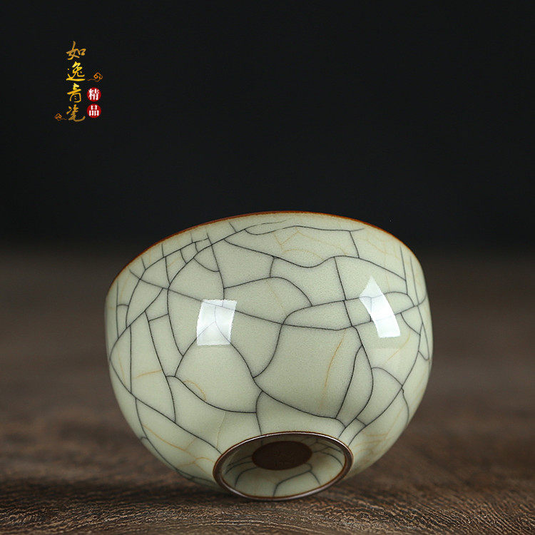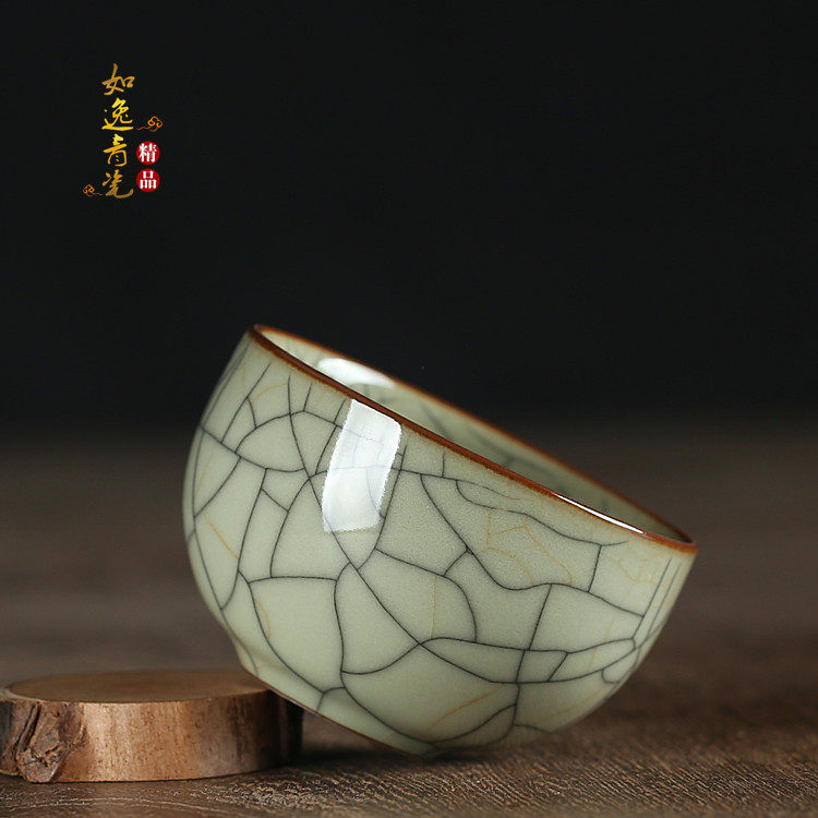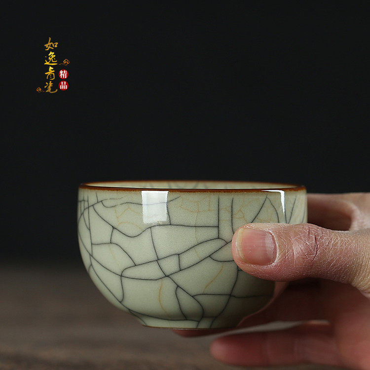 青瓷王文大师龙泉手工杯传世哥窑品茗杯陶瓷冰裂主人杯龙泉窑单杯