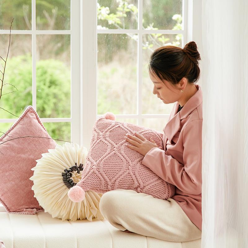 ins风抱枕粉色可爱卧室床头靠垫客厅沙发靠枕圆形蒲团抱枕套定制