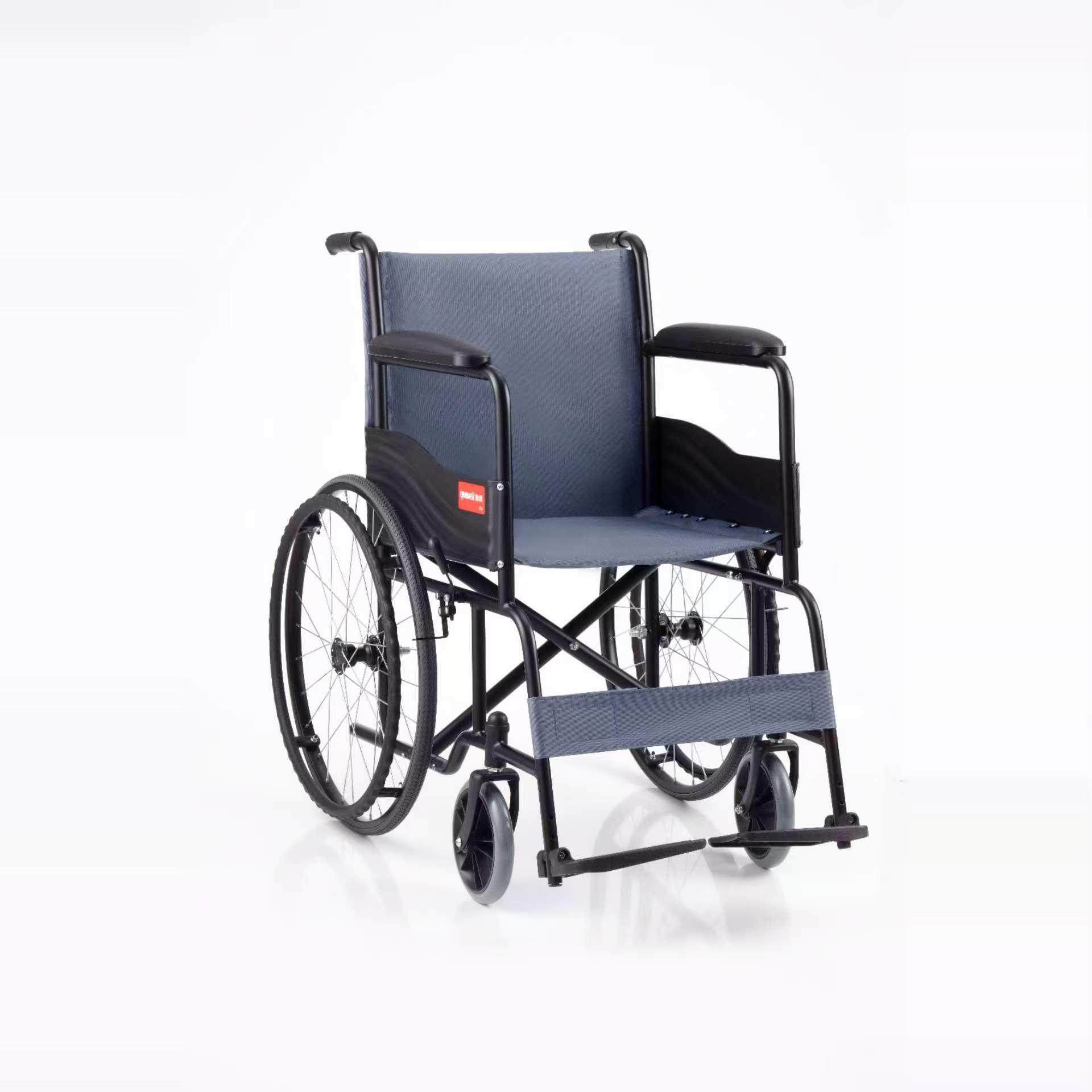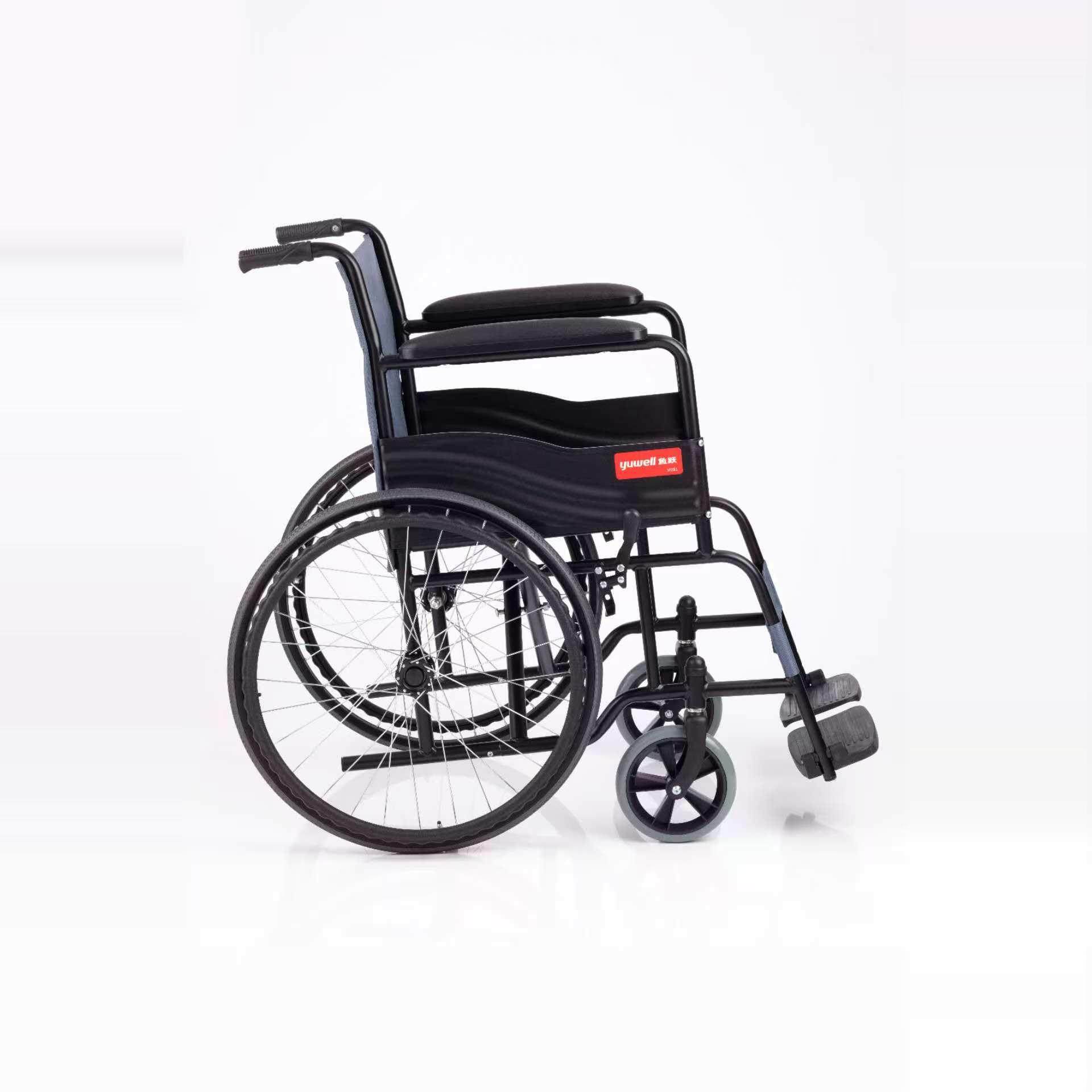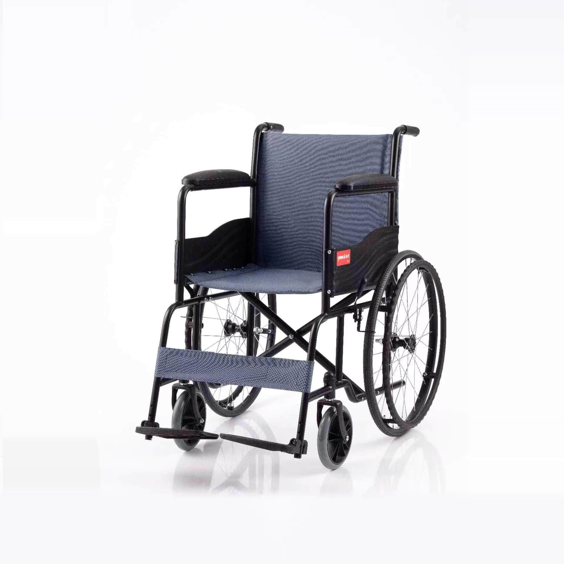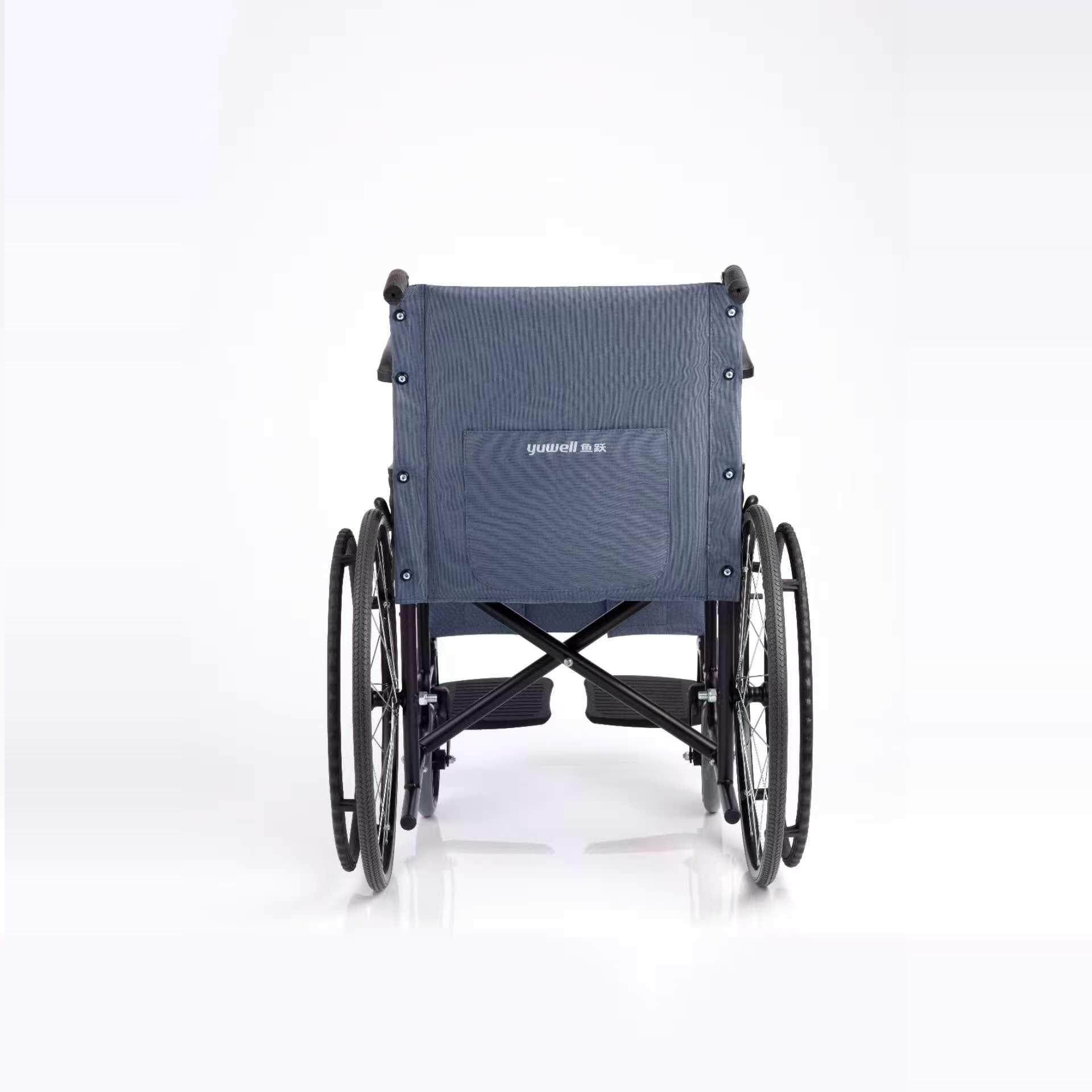 鱼跃手动轮椅车H051家用钢管瘫痪老人轻便可折叠便携免充气手推车