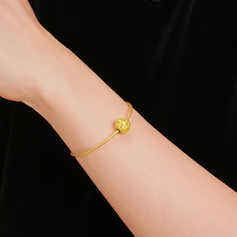 老庙黄金足金牡丹花串珠古法精致圆润雍容华贵寓意富贵吉祥贵气
