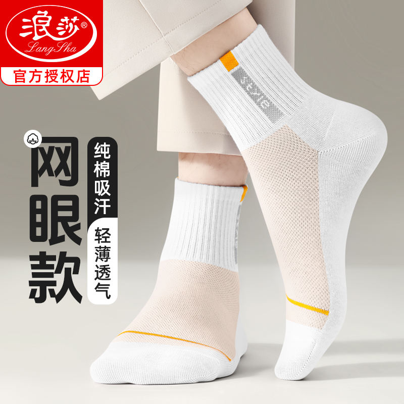 浪莎袜子男夏季薄款吸汗透气中筒青少年夏天网眼纯棉防臭运动男袜