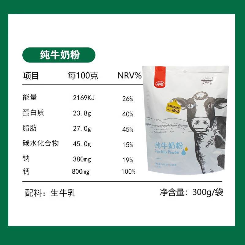 河套内蒙纯牛奶粉配料只有生牛乳