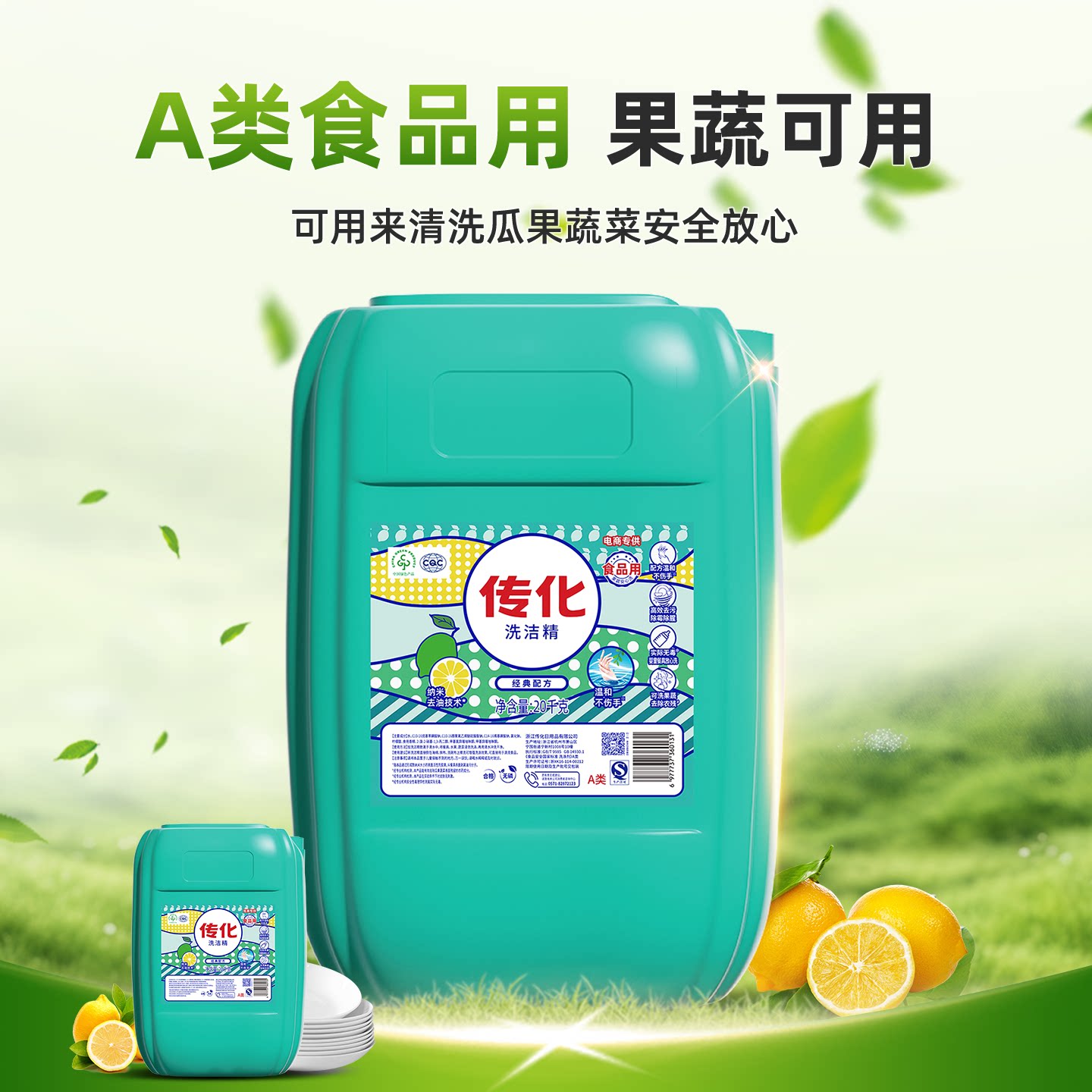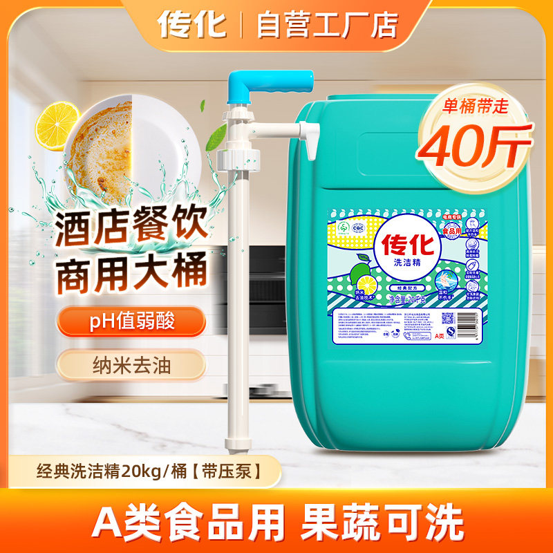 传化20kg洗洁精商用餐饮超大桶柠檬香型压泵A类食品用洗涤剂40斤