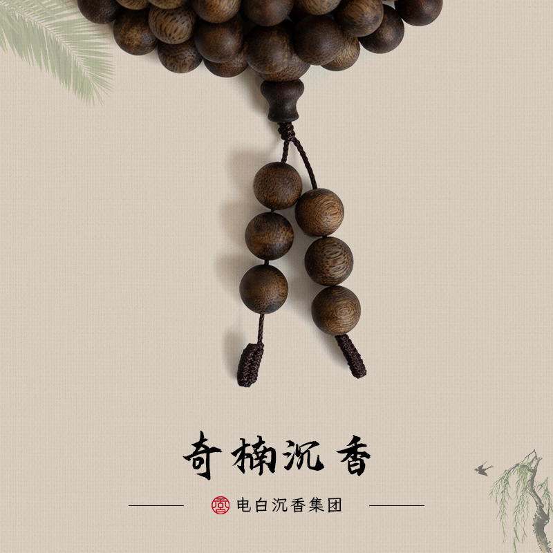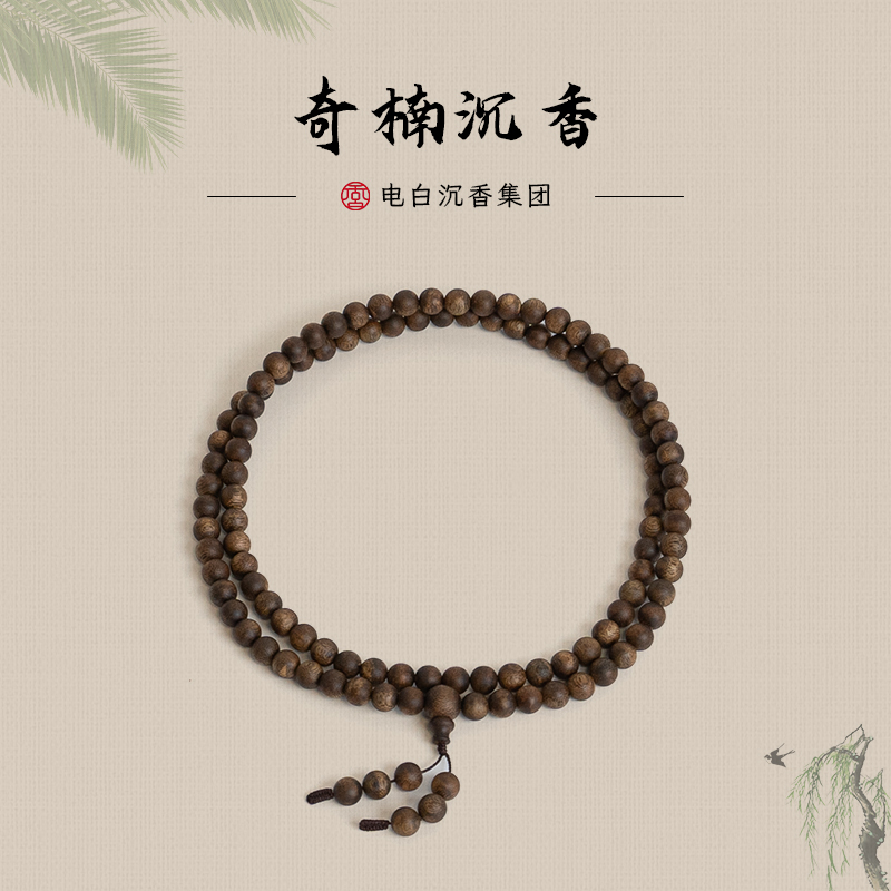 【电白沉香集团】奇楠沉香圆珠多圈手串9mm