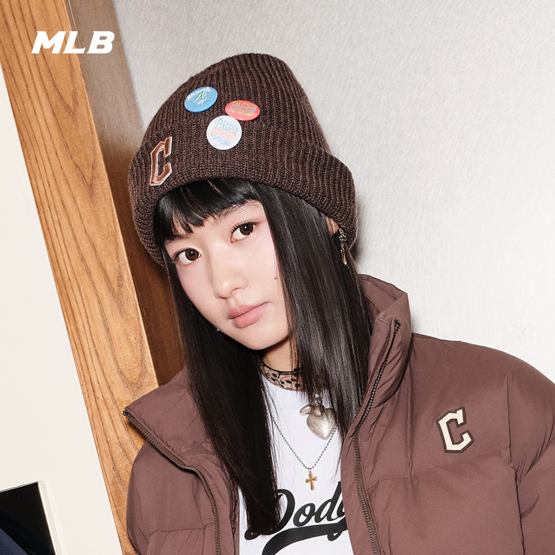 MLB官方男女情侣纯色简约大logo含羊毛保暖毛线帽24冬季BNBM2
