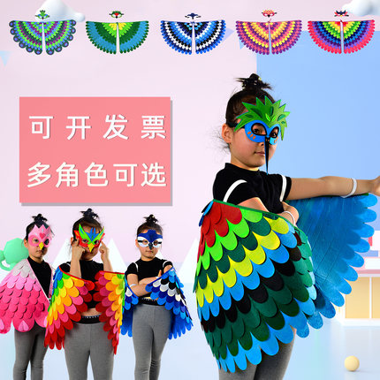 幼儿园万圣节元旦表演儿童cos鹦鹉猫头鹰火烈鸟孔雀动物演出服装