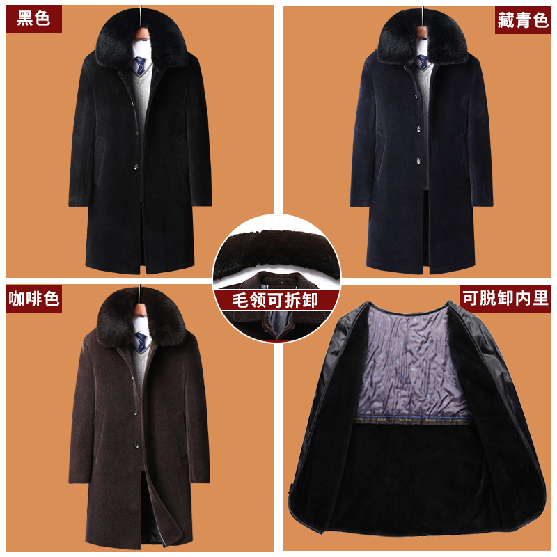 花花公子冬季中老年加绒中长款羊绒大衣男爷爷羊毛呢子外套爸爸装