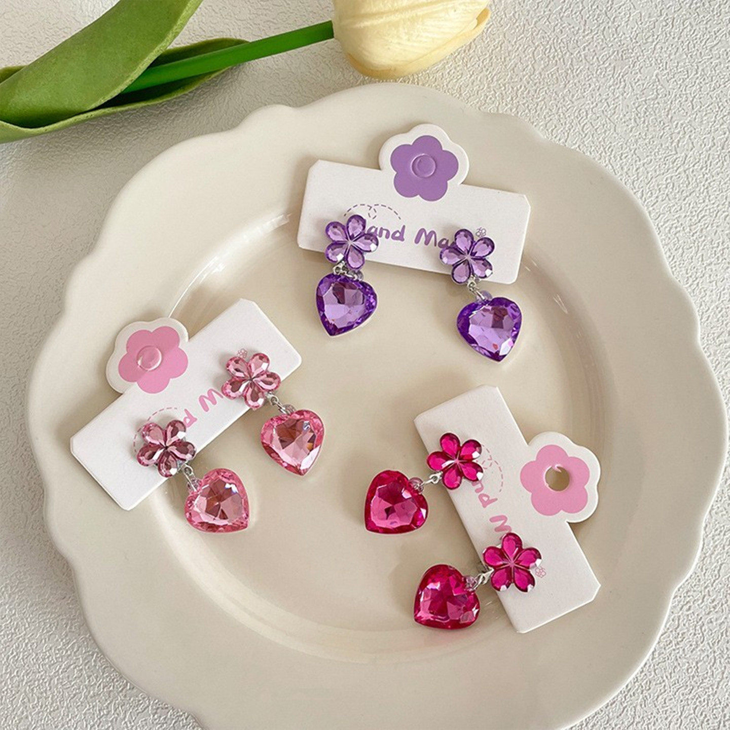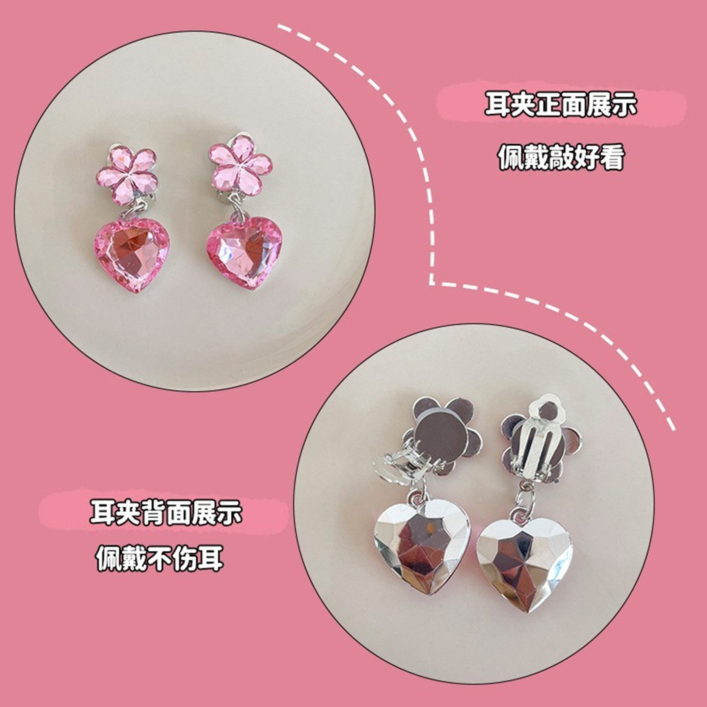 女孩耳环爱心水晶耳坠无痛耳夹新