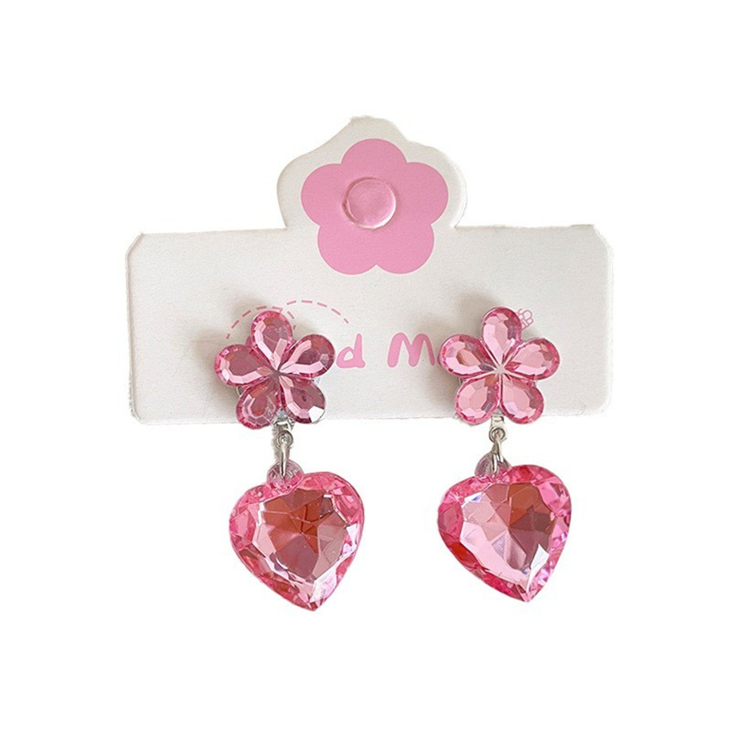儿童耳环爱心水晶耳坠无痛耳夹女童公主彩色水晶宝宝简约时尚耳饰