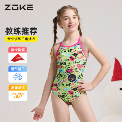 zoke洲克儿童泳衣女孩专业训练女童2025新款连体青少年竞速游泳衣