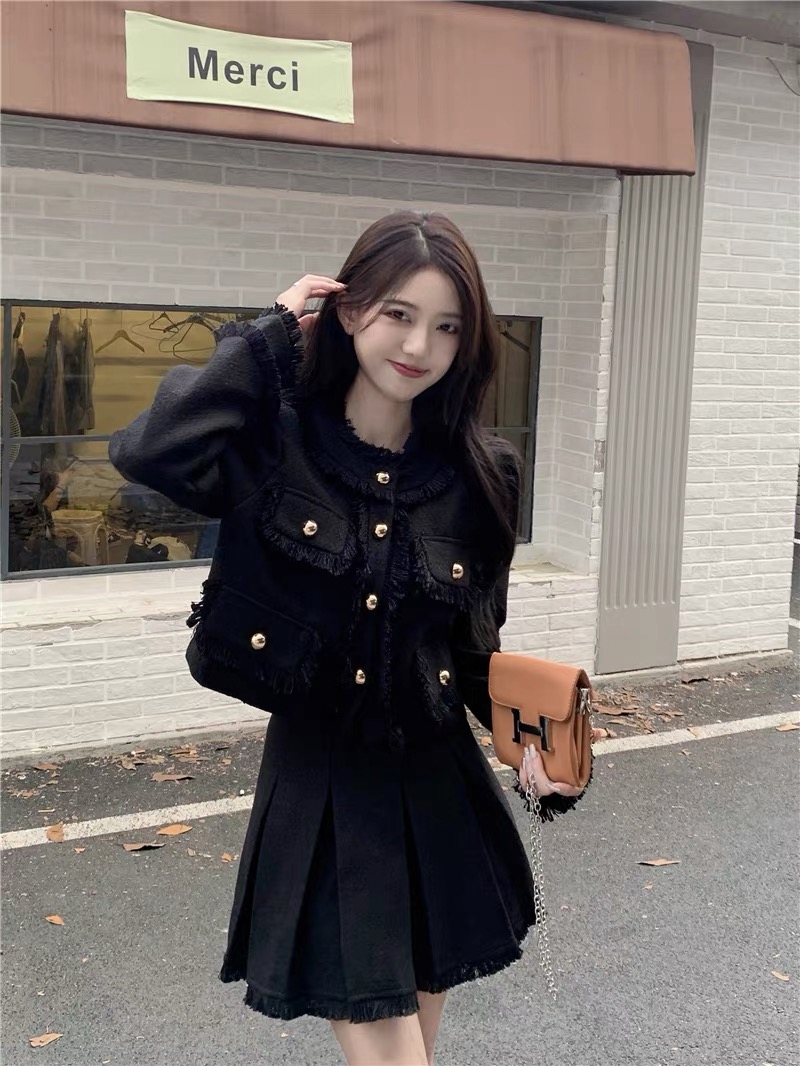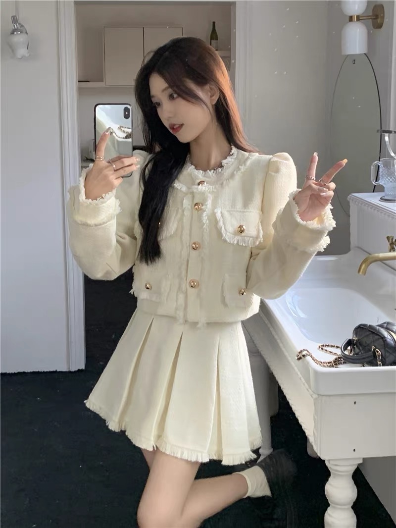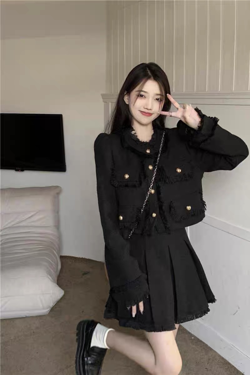法式气质名媛短款西装外套半身裙两件套2024春秋新款小香风套装女