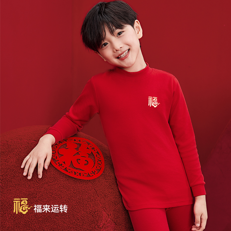 红豆儿童本命年红色内衣套装纯棉男大童女童13岁新年秋衣秋裤