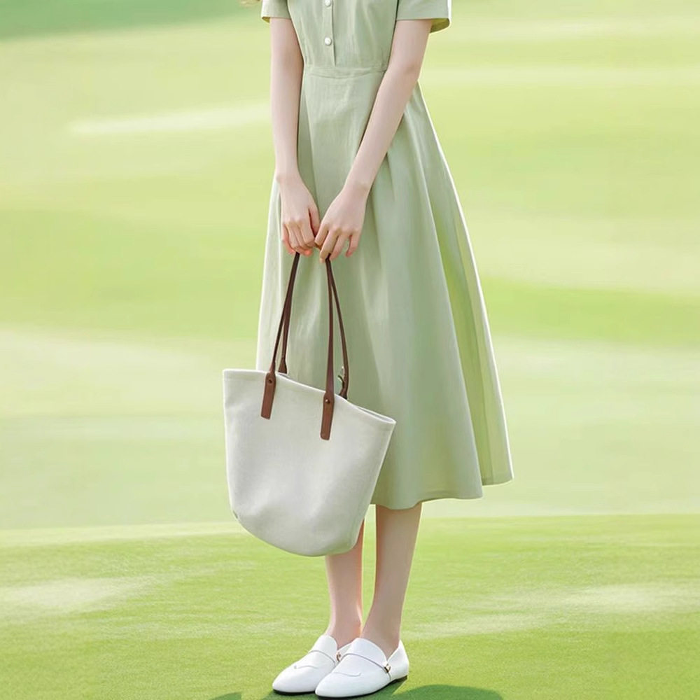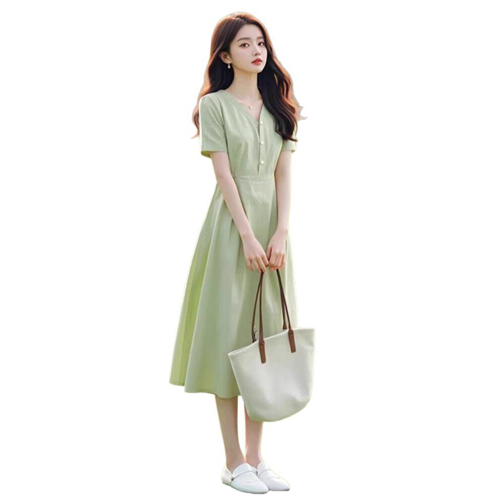 法式端庄大气小个子显高时尚海边度假绿色连衣裙子女夏季2025新款