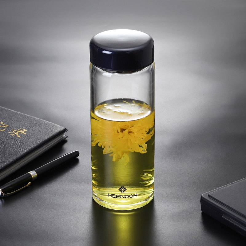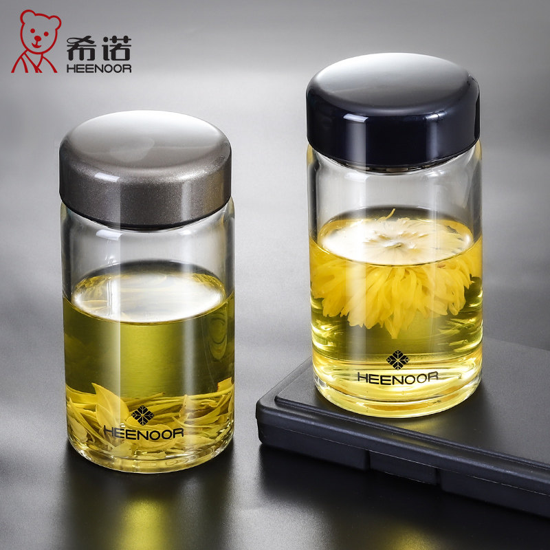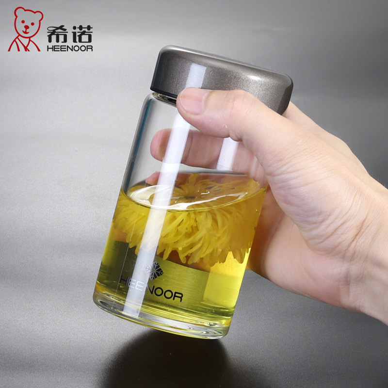 希诺新款玻璃杯 女便携小杯子单层带加厚粗矮水杯 男士家用泡茶杯