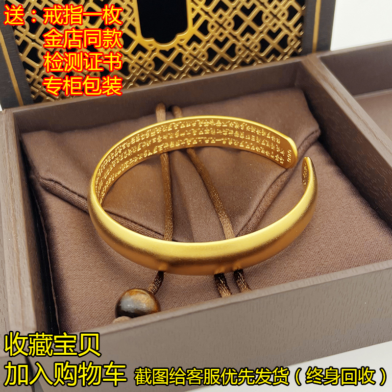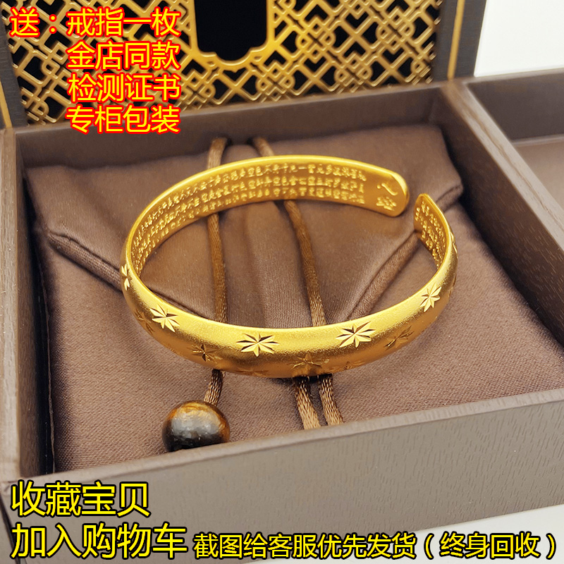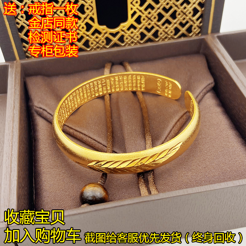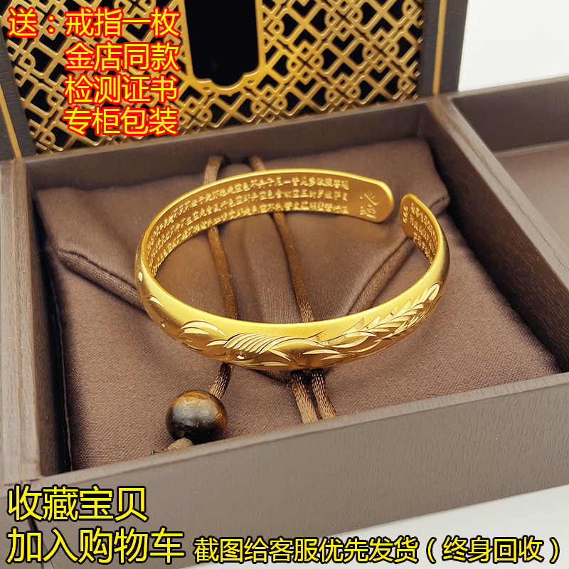 越南沙金手镯女传承心经镯子仿真黄金999镀金婚庆首饰开口金镯子
