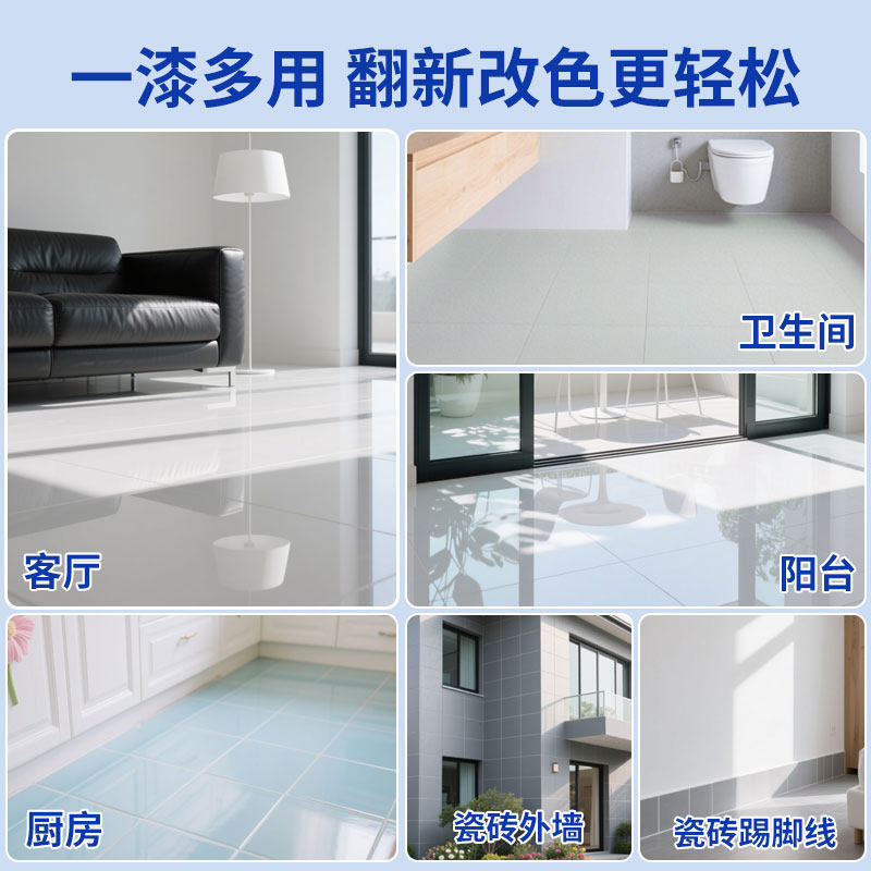 卫生间无溶剂瓷砖漆家用墙面改色漆厕所地面防水涂料耐磨翻新漆