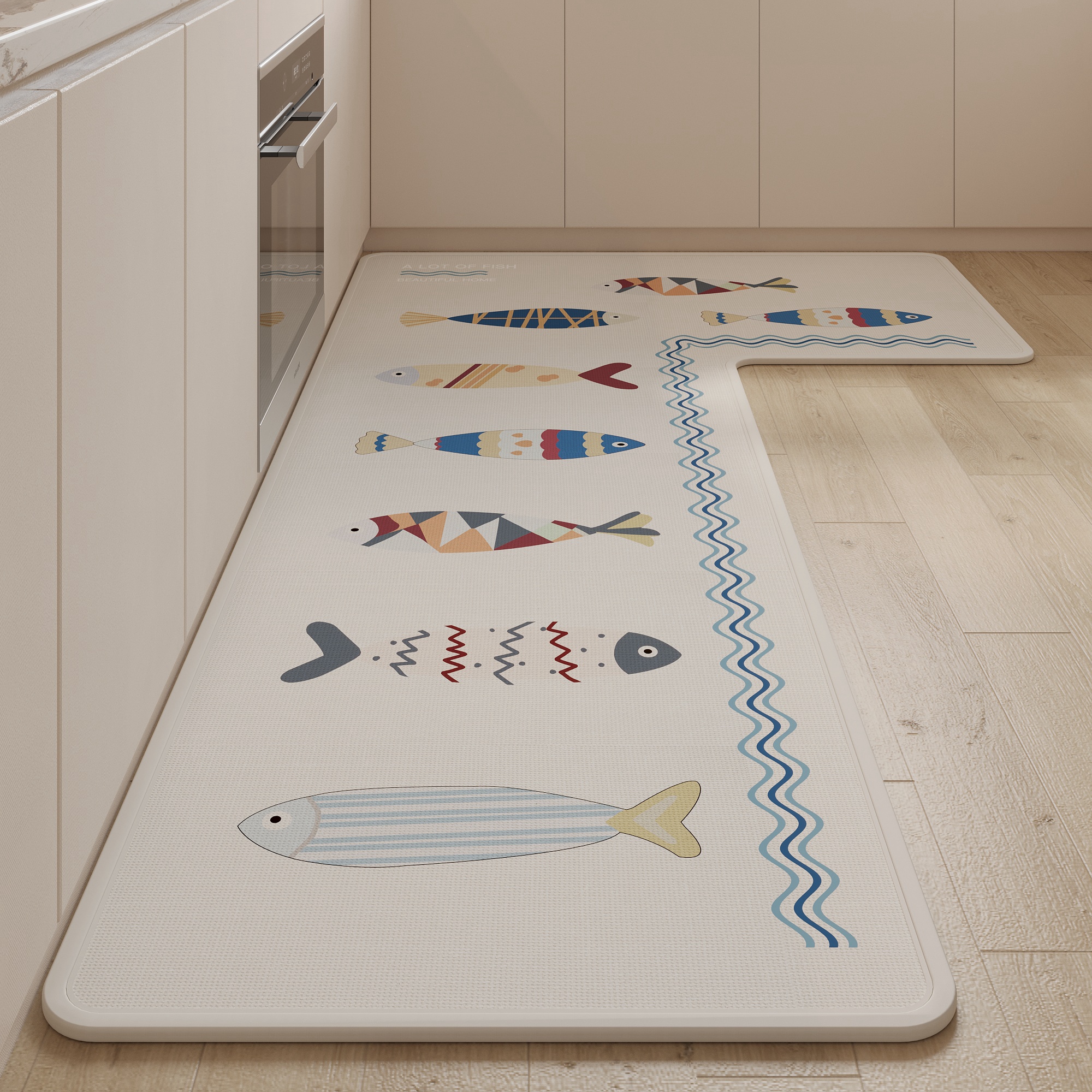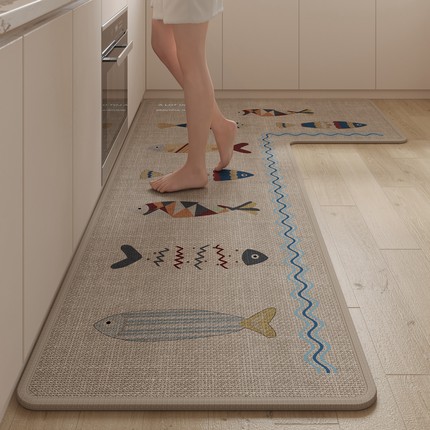 厨房地垫L型脚垫子仿亚麻编织卡通高级感吸水吸油防滑专用7字型毯