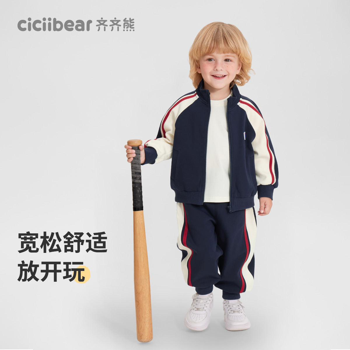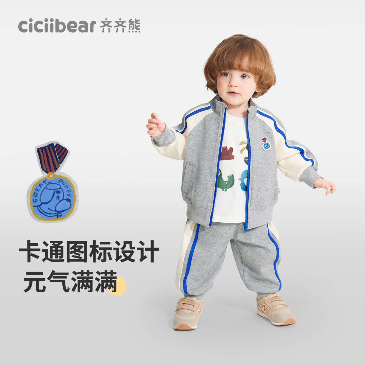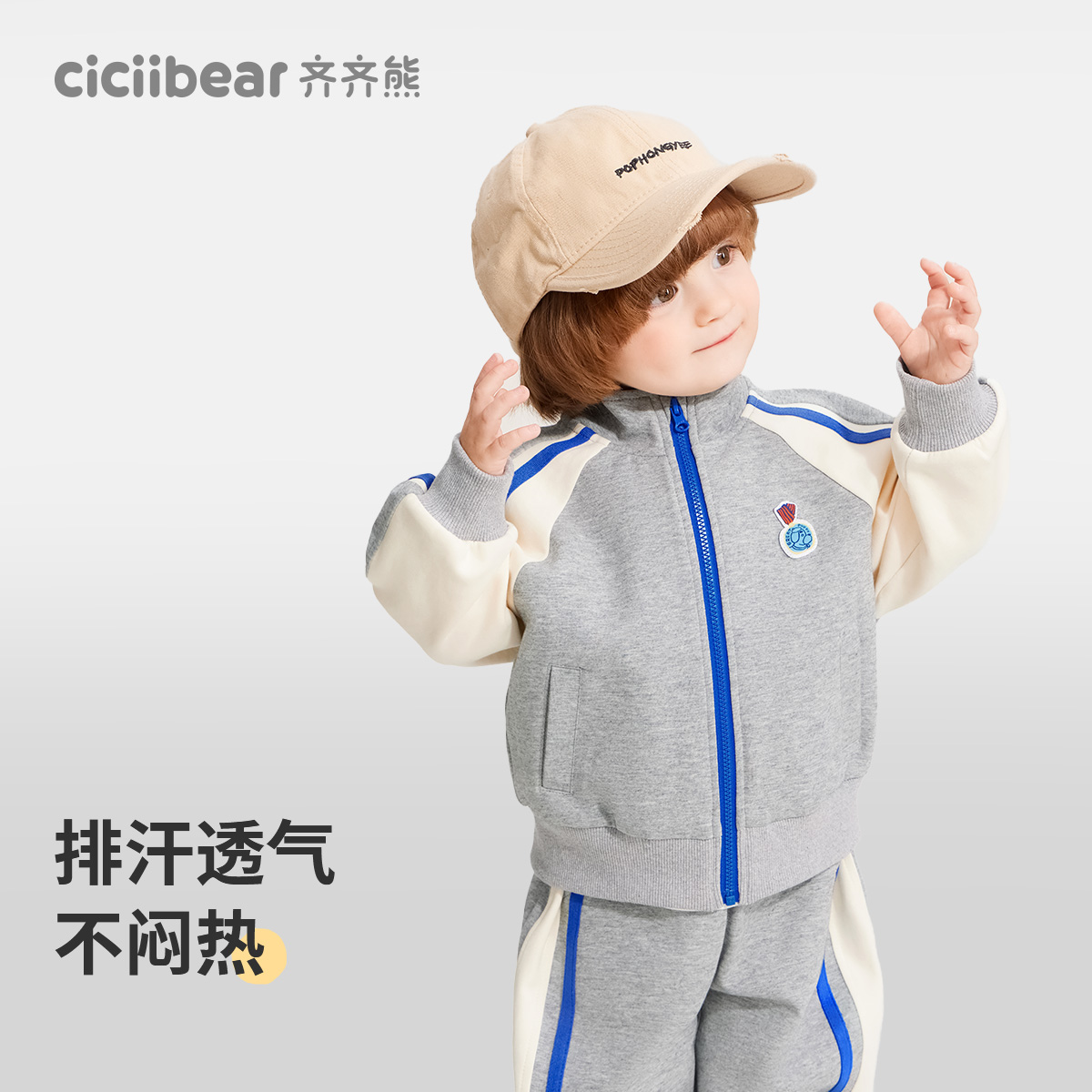 【3级抗起球】齐齐熊宝宝运动套装男童春秋款2025新款童装学院风