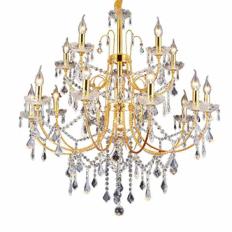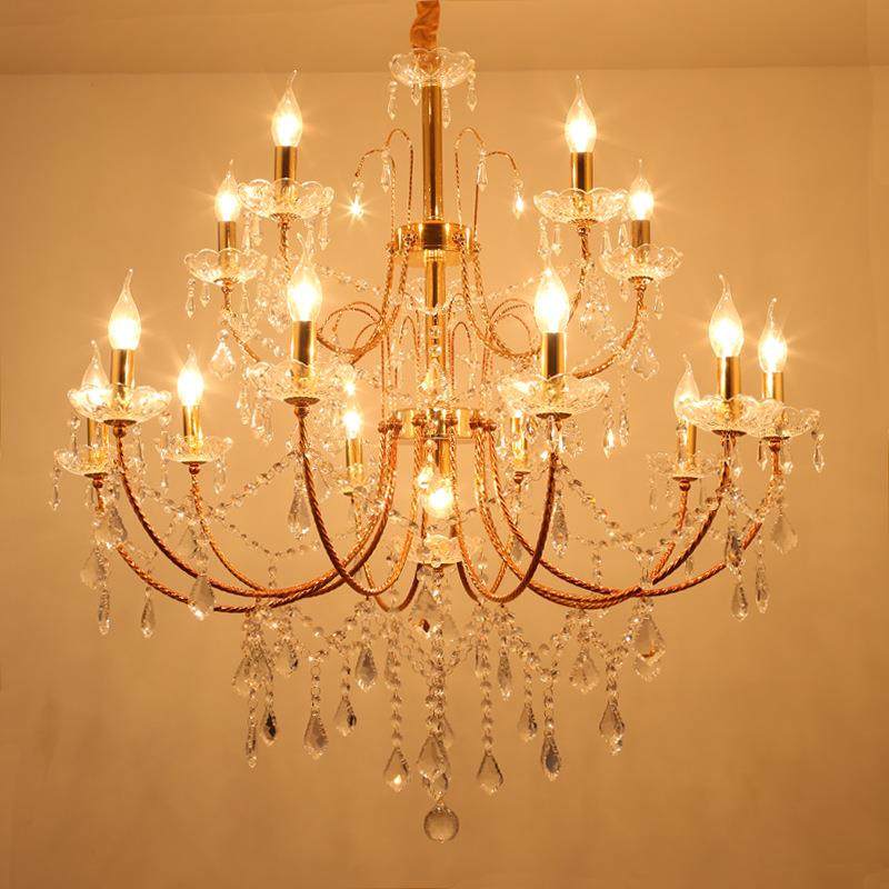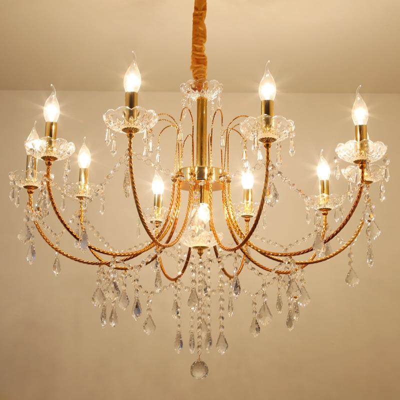直销新款美式金色铁艺水晶吊灯复古工业风客厅吊灯咖啡厅卧室餐厅