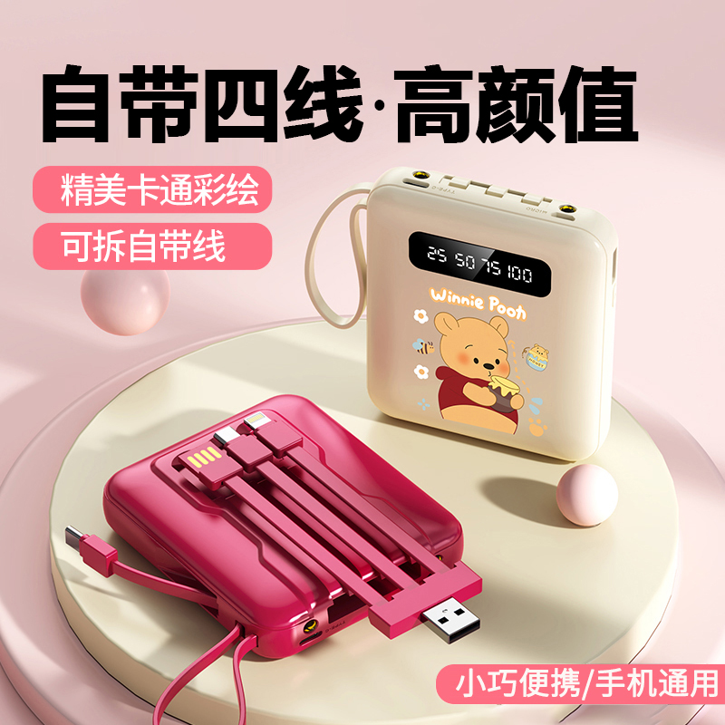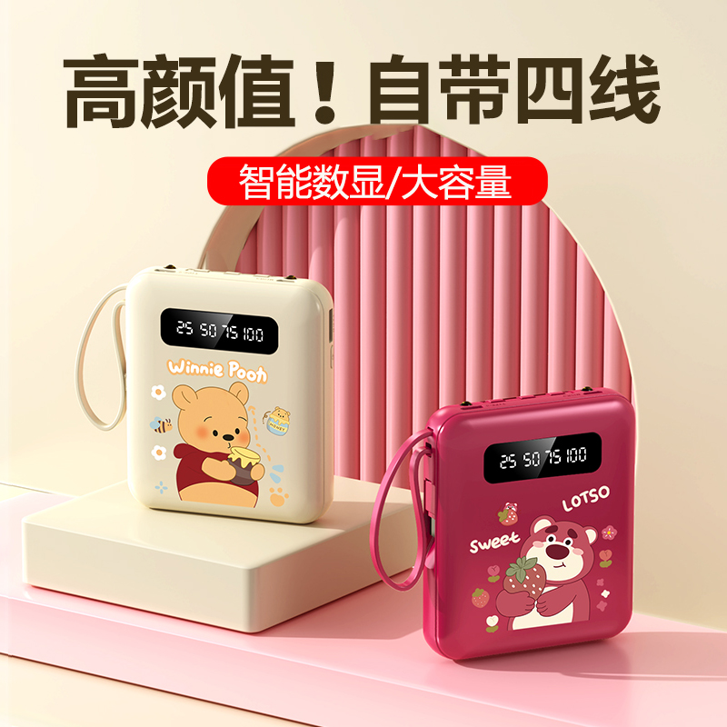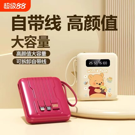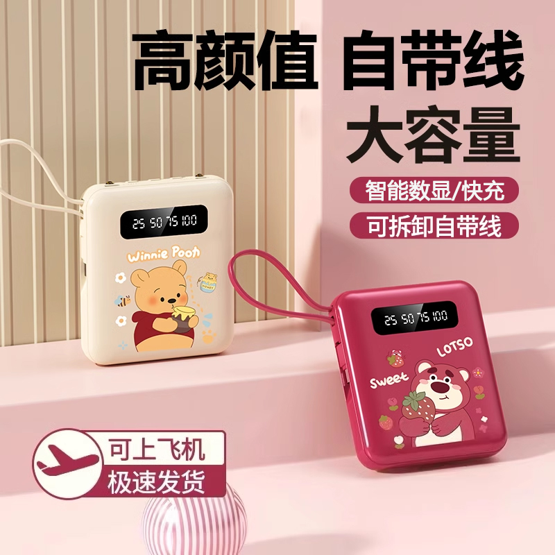 3C认证可上飞机正品迷你充电宝超大容量20000毫安自带线超薄小巧便携快充轻薄移动电源适用华为苹果手机专用