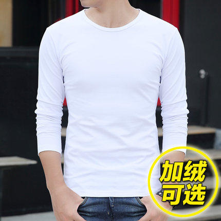 男士t恤长袖冬季纯棉圆领秋衣上衣服内搭丅加绒加厚保暖打底衫血