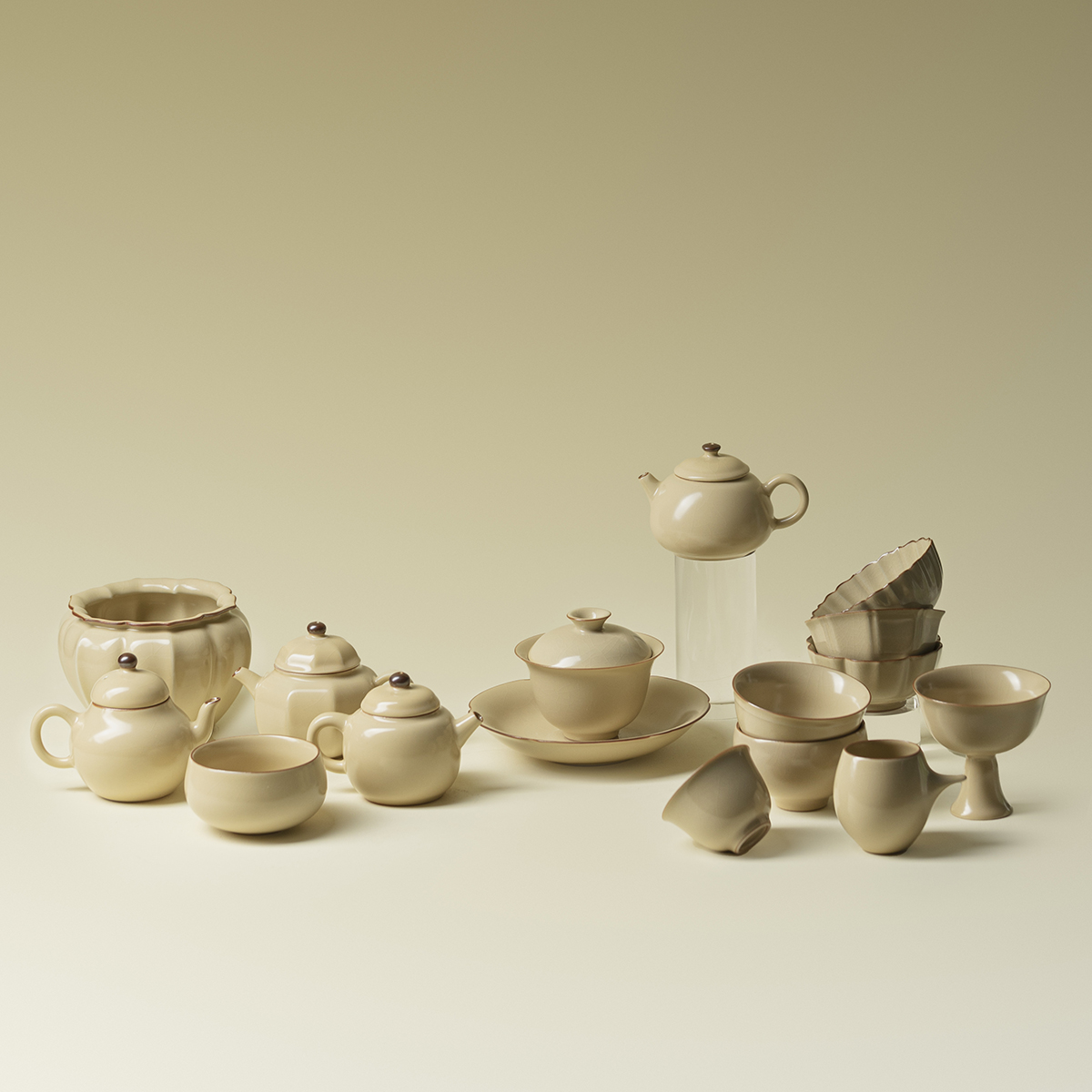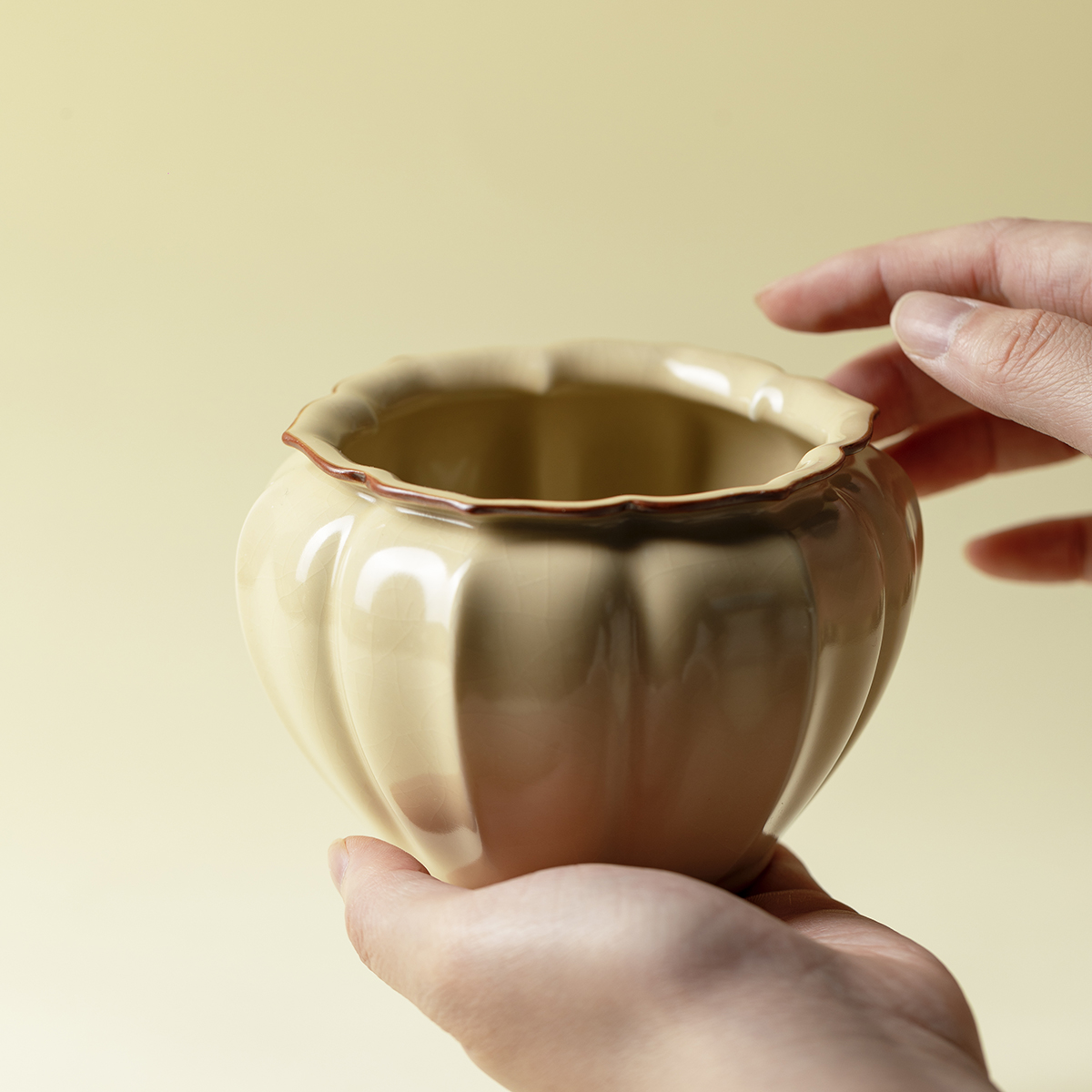 束刻米黄汝窑建水高端陶瓷茶具开片可养茶洗杯洗茶道配件干泡水孟