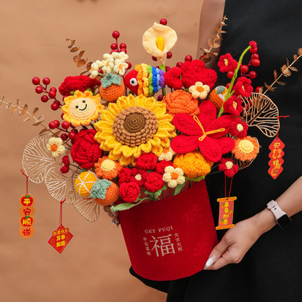 乔迁之喜新房搬家开业装饰针织向日葵毛线花桌面假花暖房新年礼物