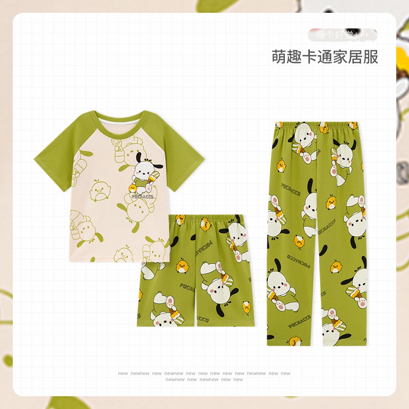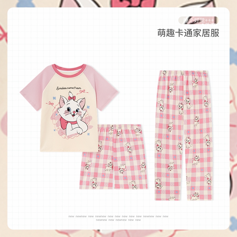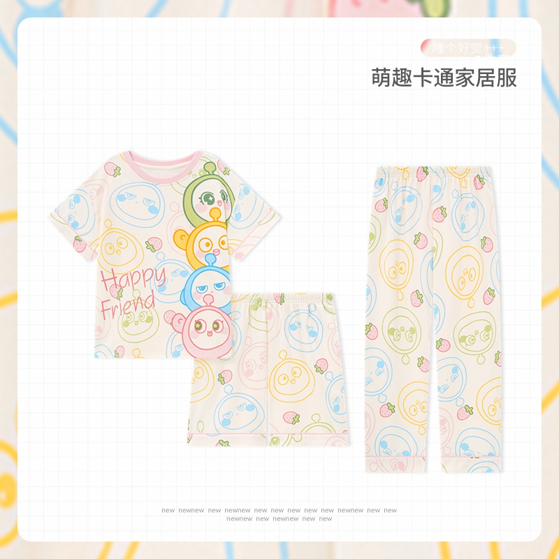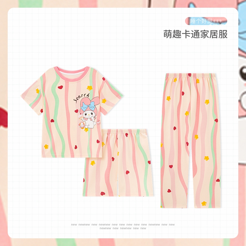 春夏季女童可爱loopy海狸睡衣儿童新款纯棉短袖长裤家居服三件套