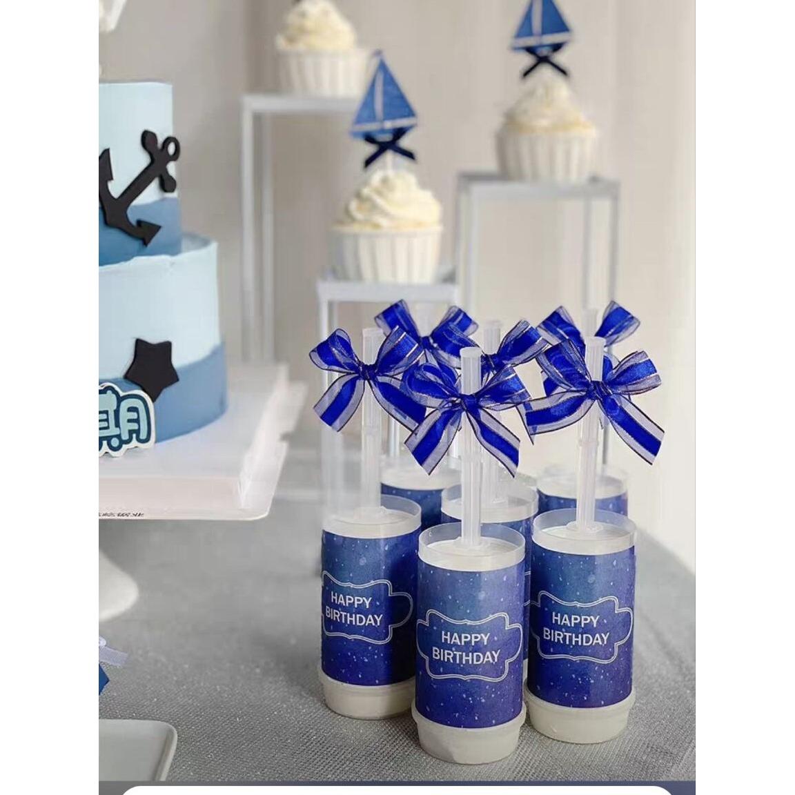 深蓝色星空主题甜品台布置克莱因蓝色生日插牌推推乐围边装饰装扮