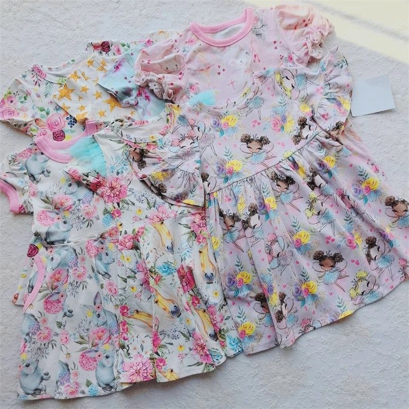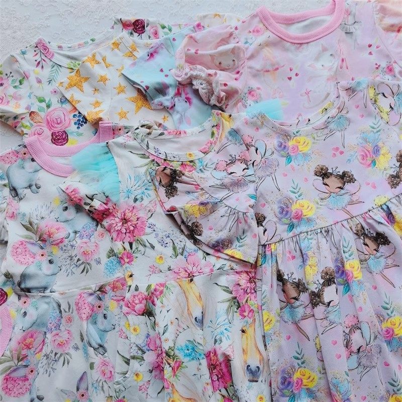 短袖连衣裙系列~澳R家 女中小童3-7岁花朵五角星女孩大裙摆连衣裙