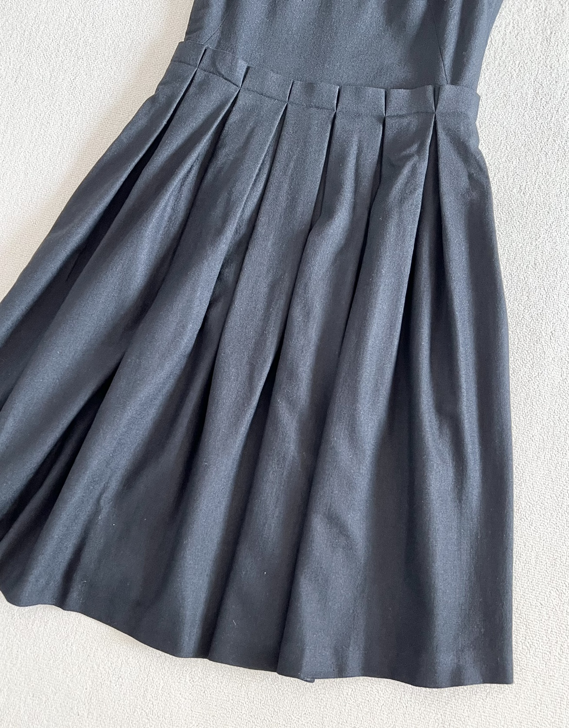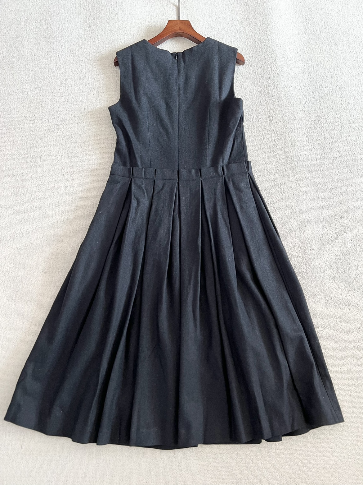 秋冬时尚百搭黑色羊毛无袖连衣裙设计感修身显瘦气质中长款百褶裙