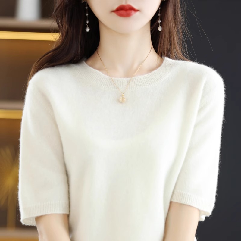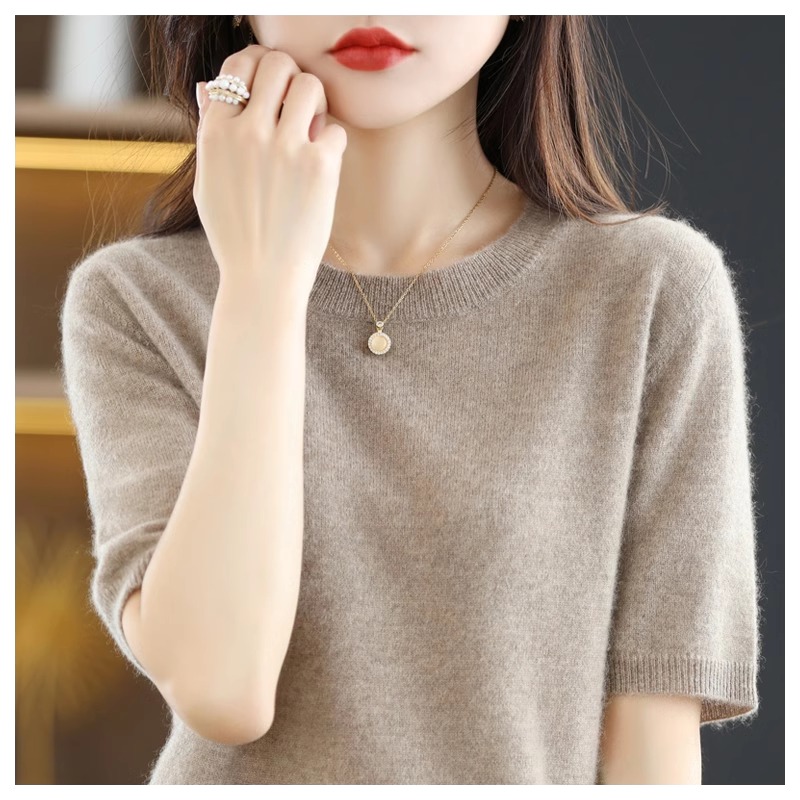 断码羊毛衫39元针织短袖女宽松t恤内搭毛衣打底秋季短款半袖上衣