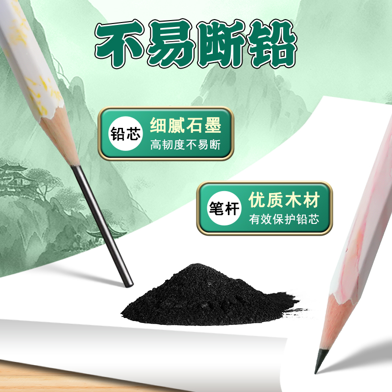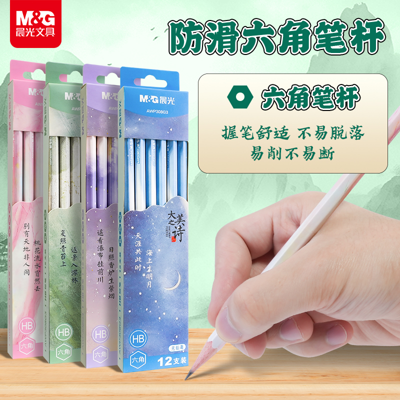 晨光铅笔小学生铅笔一年级二年级学生用HB铅笔幼儿园初学儿童素描大美之诗高颜值六角杆彩色笔杆2B考试涂卡笔