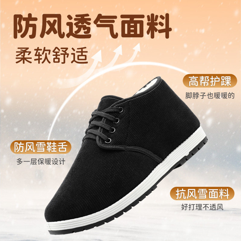 冬季老北京布鞋男款棉鞋高帮加绒加厚保暖舒适中老年防寒爸爸鞋子