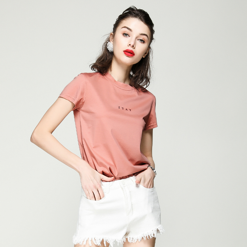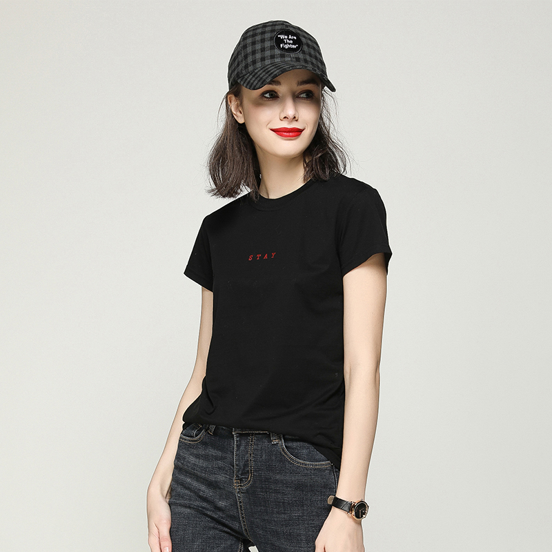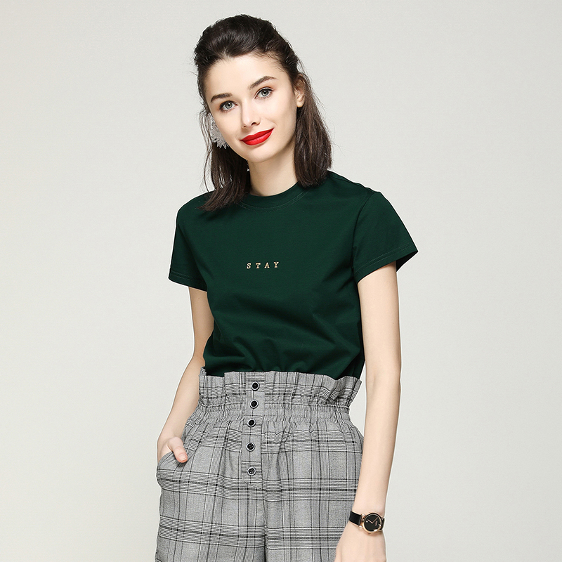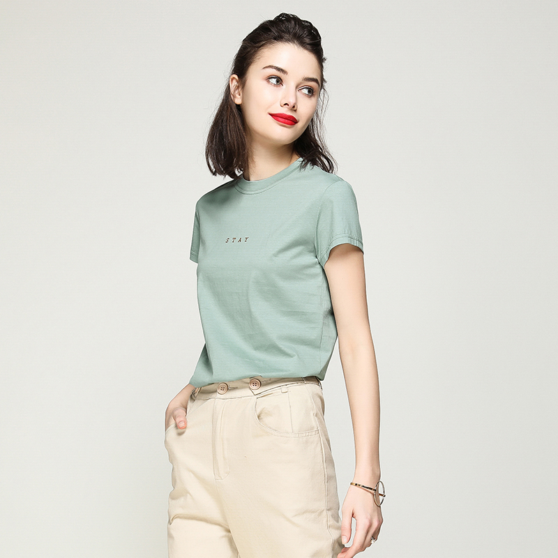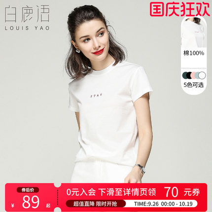 白鹿语100%棉创意字母印花T恤夏款简约时尚多色百搭短袖上衣女