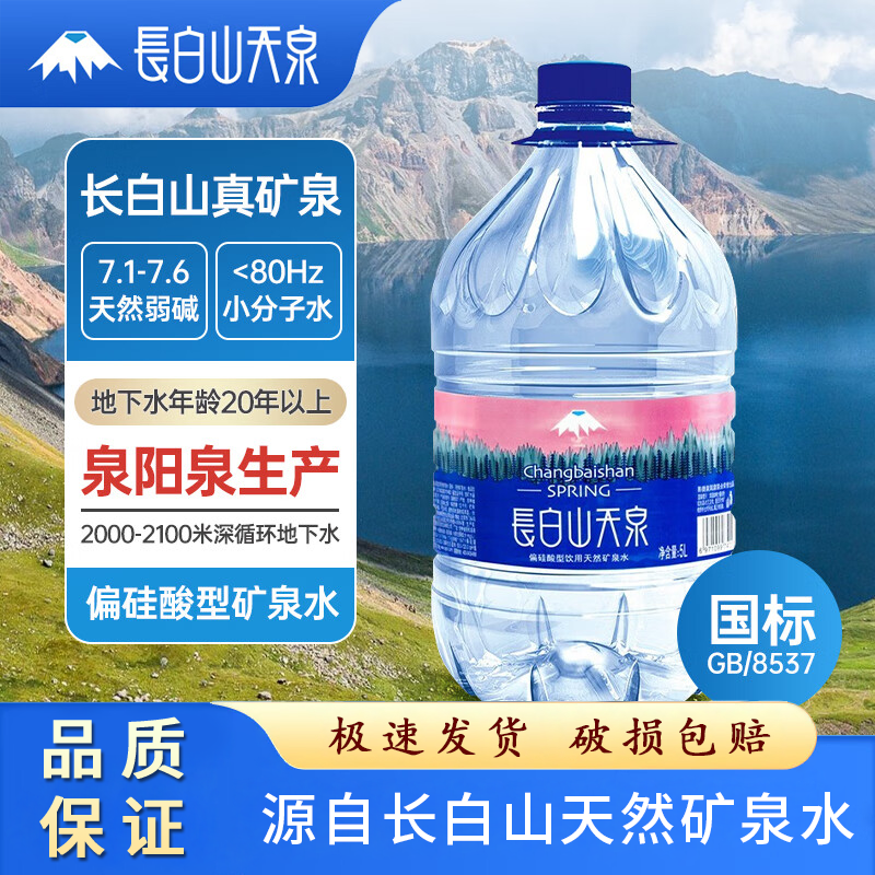 泉阳泉生产 长白山天泉天然矿泉水5L*4桶5升弱碱性家庭大瓶饮用水