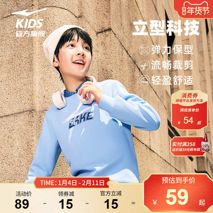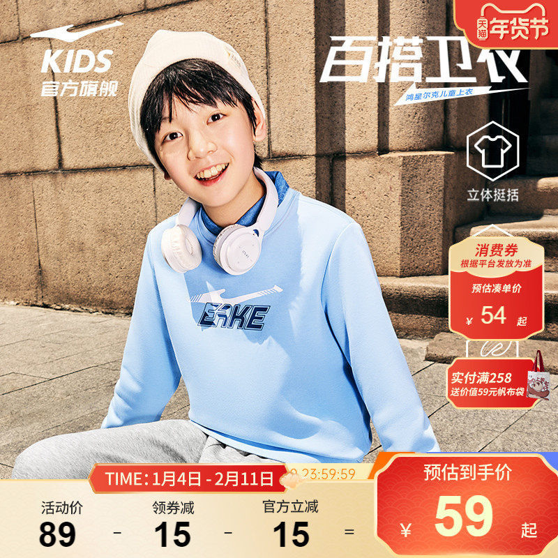 鸿星尔克童装男童卫衣秋季百搭运动套头衫儿童休闲长袖时尚上衣